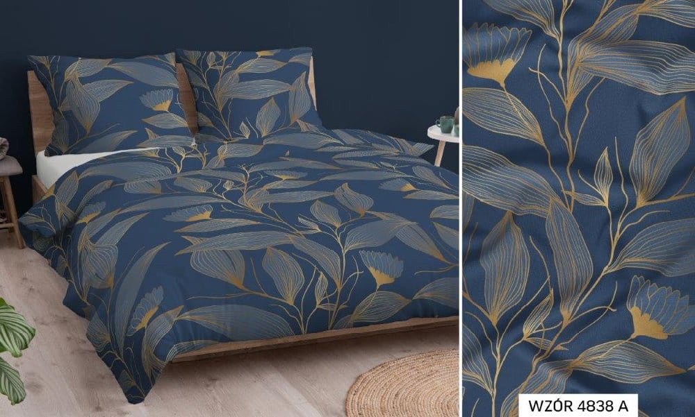 granatowo złota pościel bawełniana 4838A 160x200 PREMIUM POLSKA