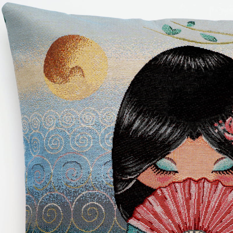 Piękna dekoracyjna poszewka Gobelin Japonka 2 45x45 na poduszkę elegancko ozdobi Twoje wnętrze. Zasuwana na zamek błyskawiczny. Poszewka dwustronna.