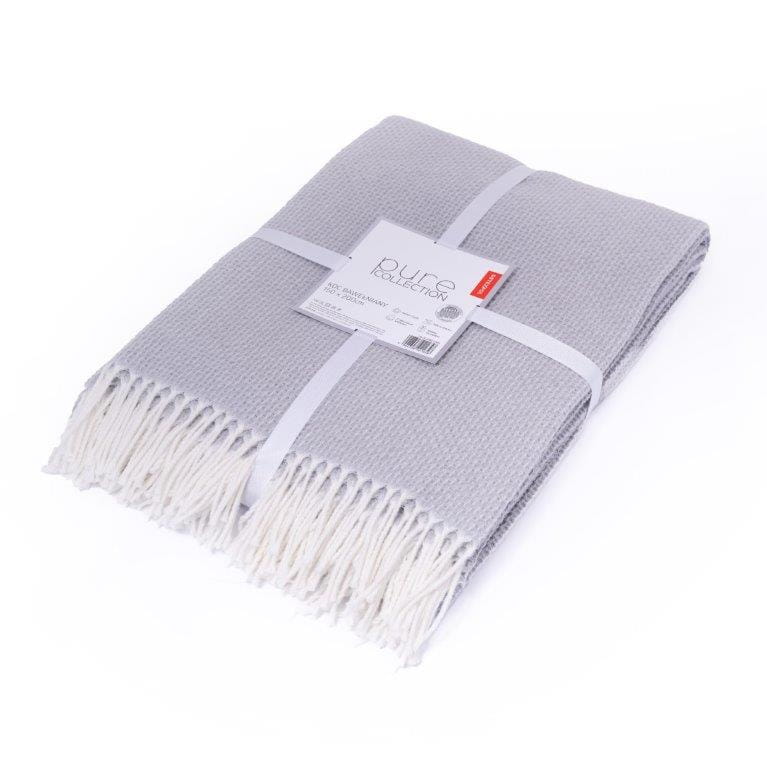 jasno szary koc bawełniano akrylowy 220x200 z frędzlami pure collection DETEXPOL