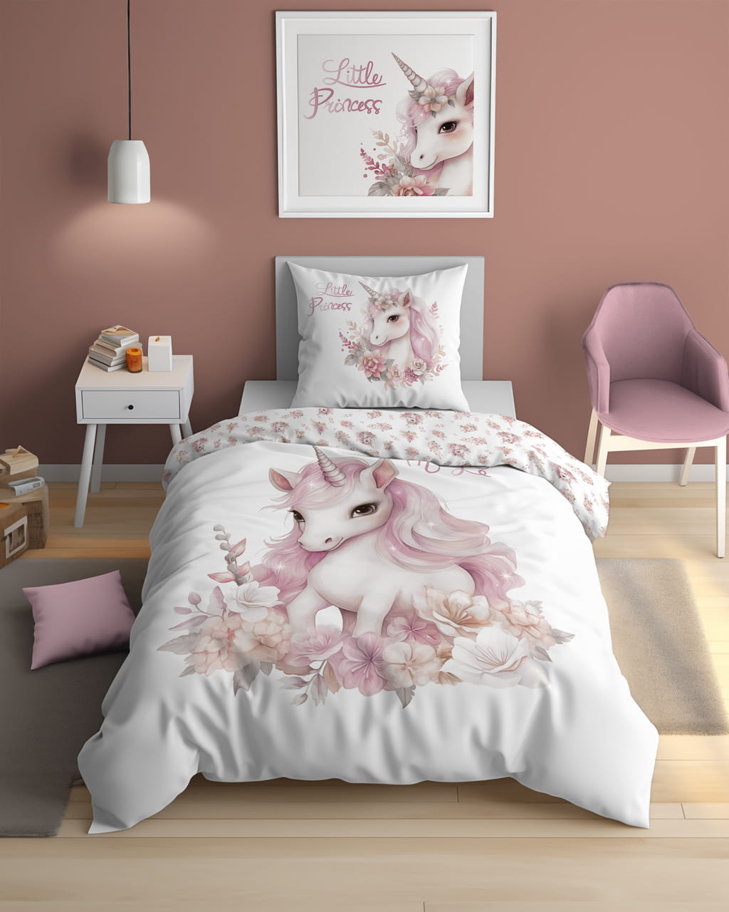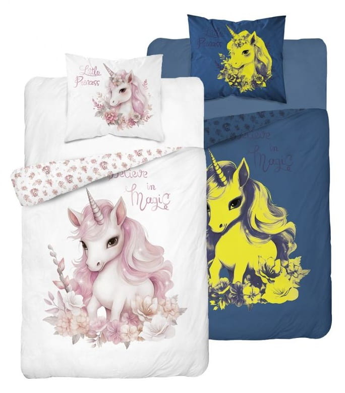 Kolorowy nadruk na pościeli wprowadzi do sypialni przyjazną atmosferę i pozwoli cieszyć się spokojnym snem z jednorożcem. Dodatkowo wzór pościeli jest dwustronny więc możemy wybrać w jaki sposób zaaranżujemy sypialnie. Pościel Unicorn zapinana jest na bezpieczny i atestowany zamek błyskawiczny, który ułatwia i przyśpiesza wymianę pościeli. Pościel może okazać się idealną propozycją na prezent.
