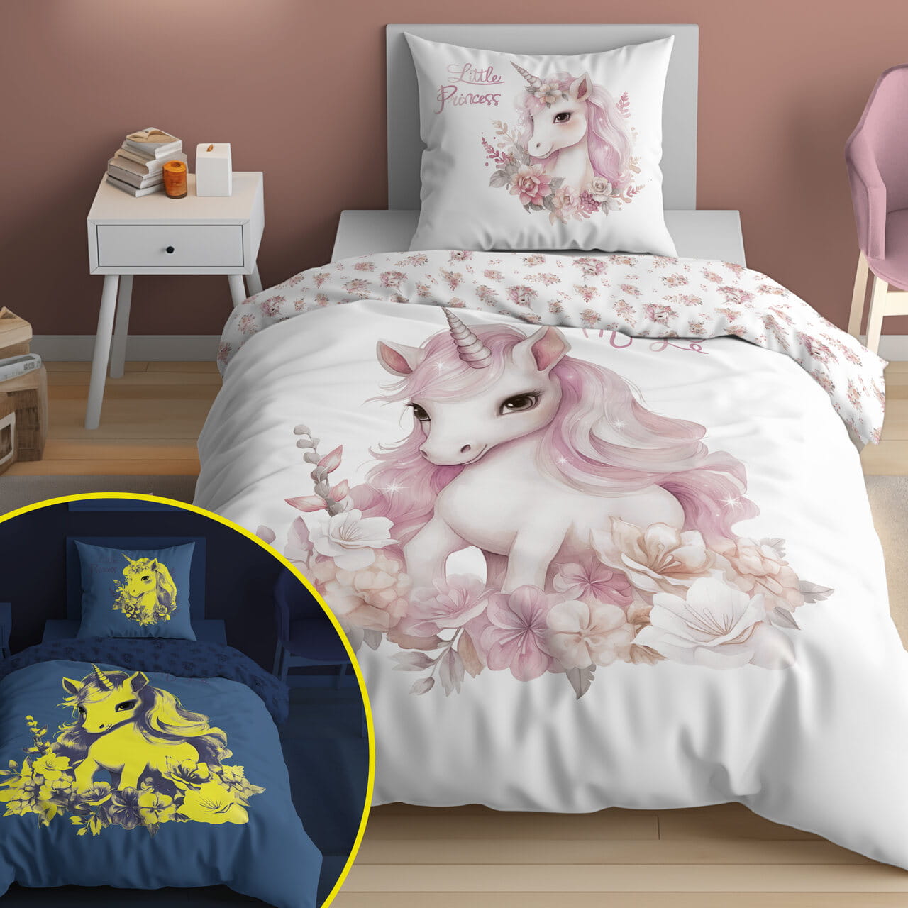 jednorożec ŚWIECĄCA pościel bawełniana młodzieżowa 5405A