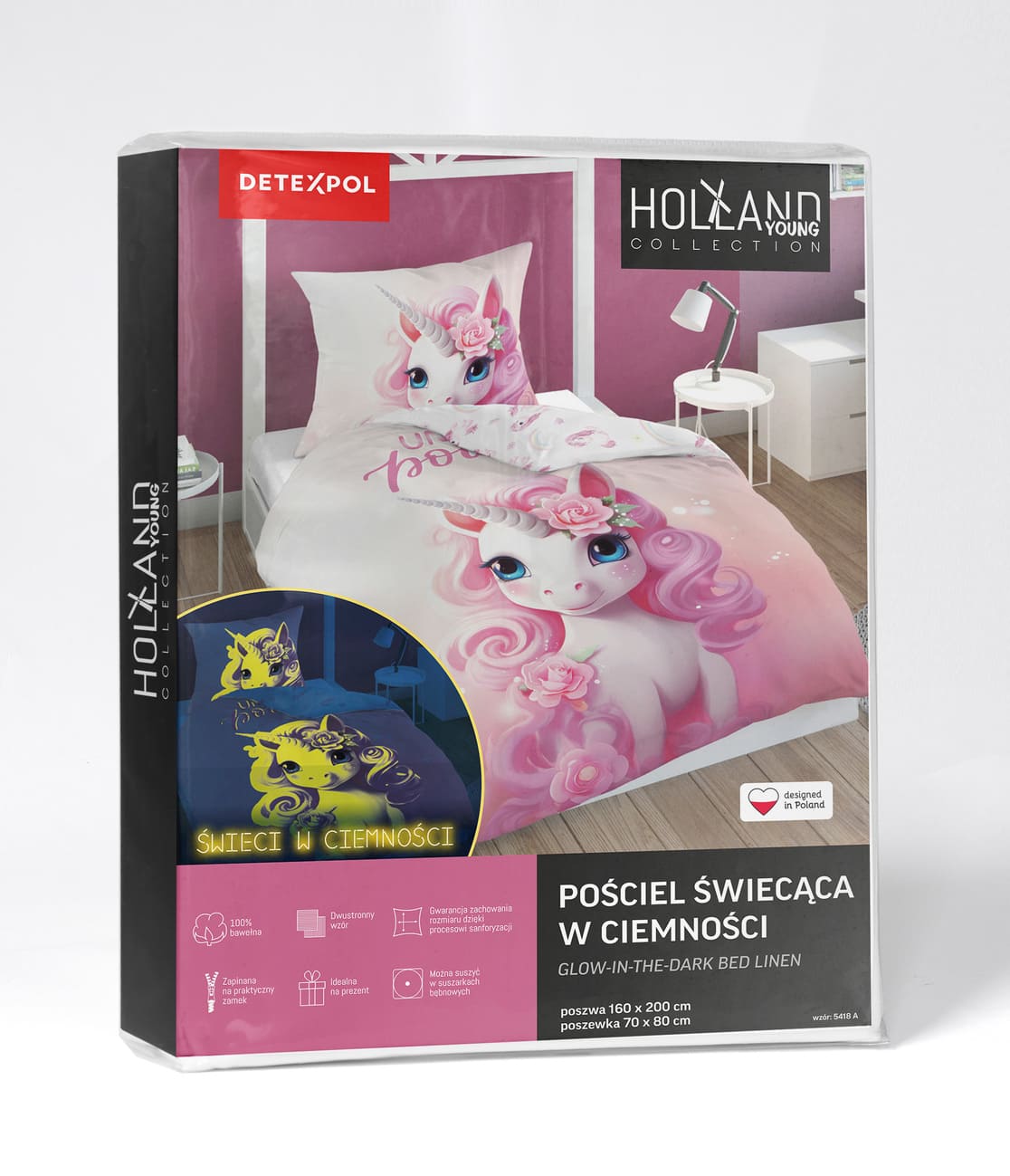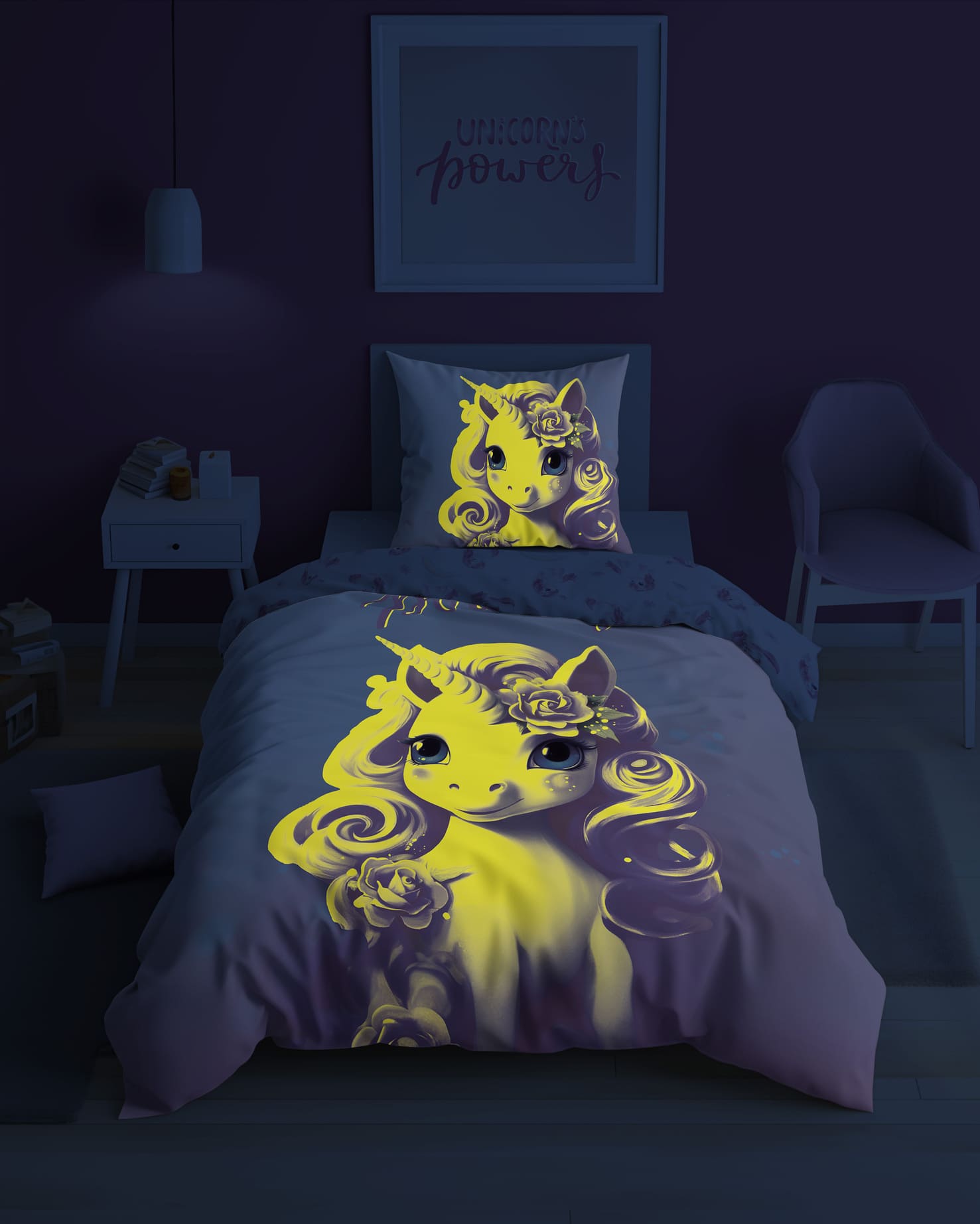 jednorożec ŚWIECĄCA pościel bawełniana młodzieżowa 5418A