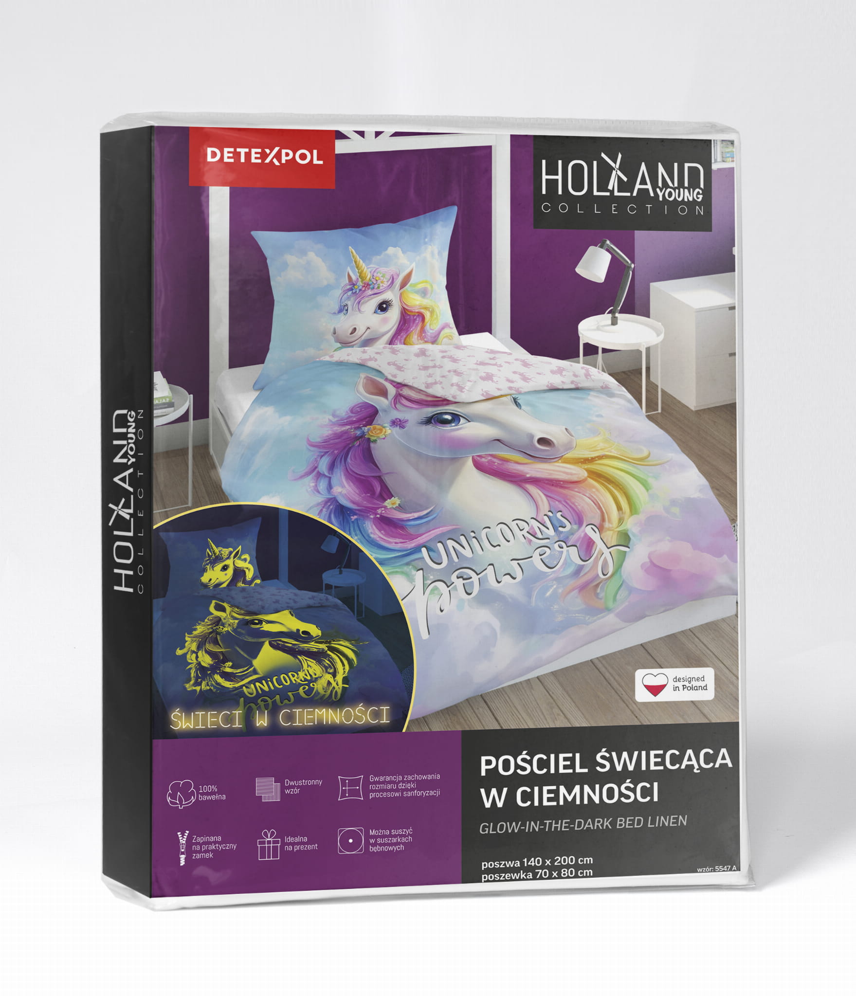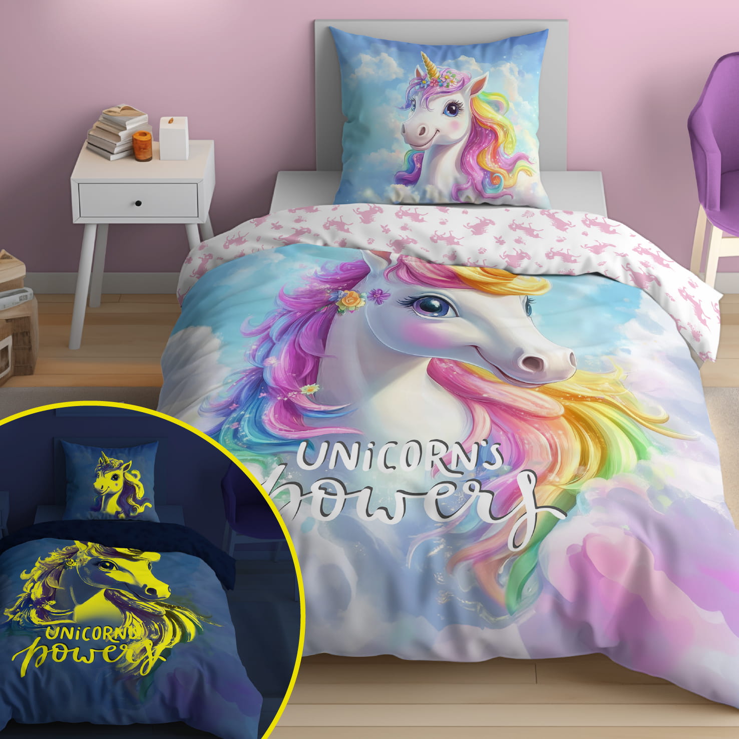 jednorożec świecąca pościel bawełniana młodzieżowa 5547A