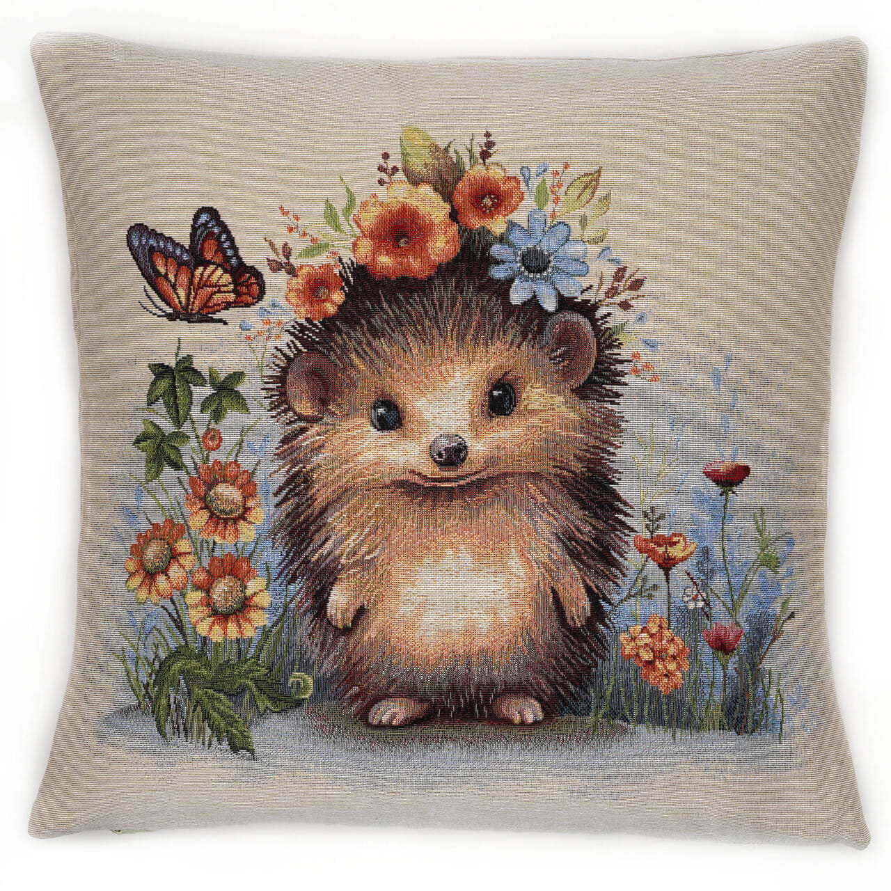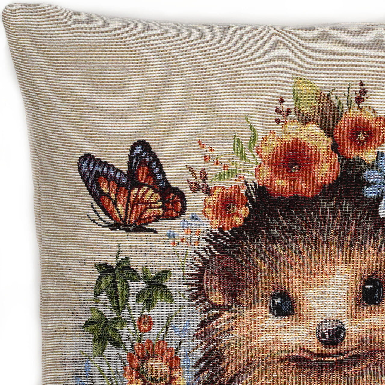 Piękna dekoracyjna poszewka Gobelin Jeżyk 45x45 na poduszkę elegancko ozdobi Twoje wnętrze. Zasuwana na zamek błyskawiczny. Poszewka dwustronna.