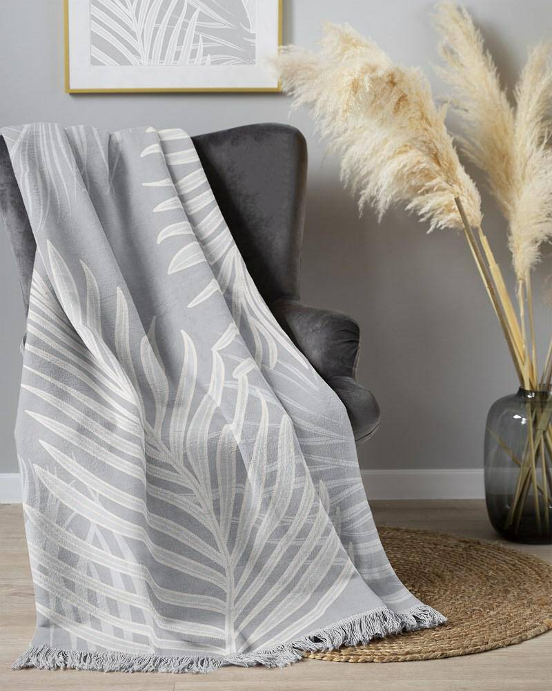 Koc bawełniano-akrylowy w liście 150x200 to produkt marki Detexpol. Składa się z najwyższej jakości przędzy zawierającej 58% bawełny, 32% akrylu oraz 10% poliestru. Jest niezwykle miękki i puszysty w dotyku, a do tego doskonale otula ciało podczas chłodnych wieczorów. Jego ponadprzeciętna jakość gwarantuje, iż jest to produkt na lata. Posiada standardowy rozmiar 150x200 cm, dzięki czemu może być używany jako narzuta na łóżko. Nowoczesne wzory i modne kolory pięknie sprawdzą się w każdym wnętrzu.