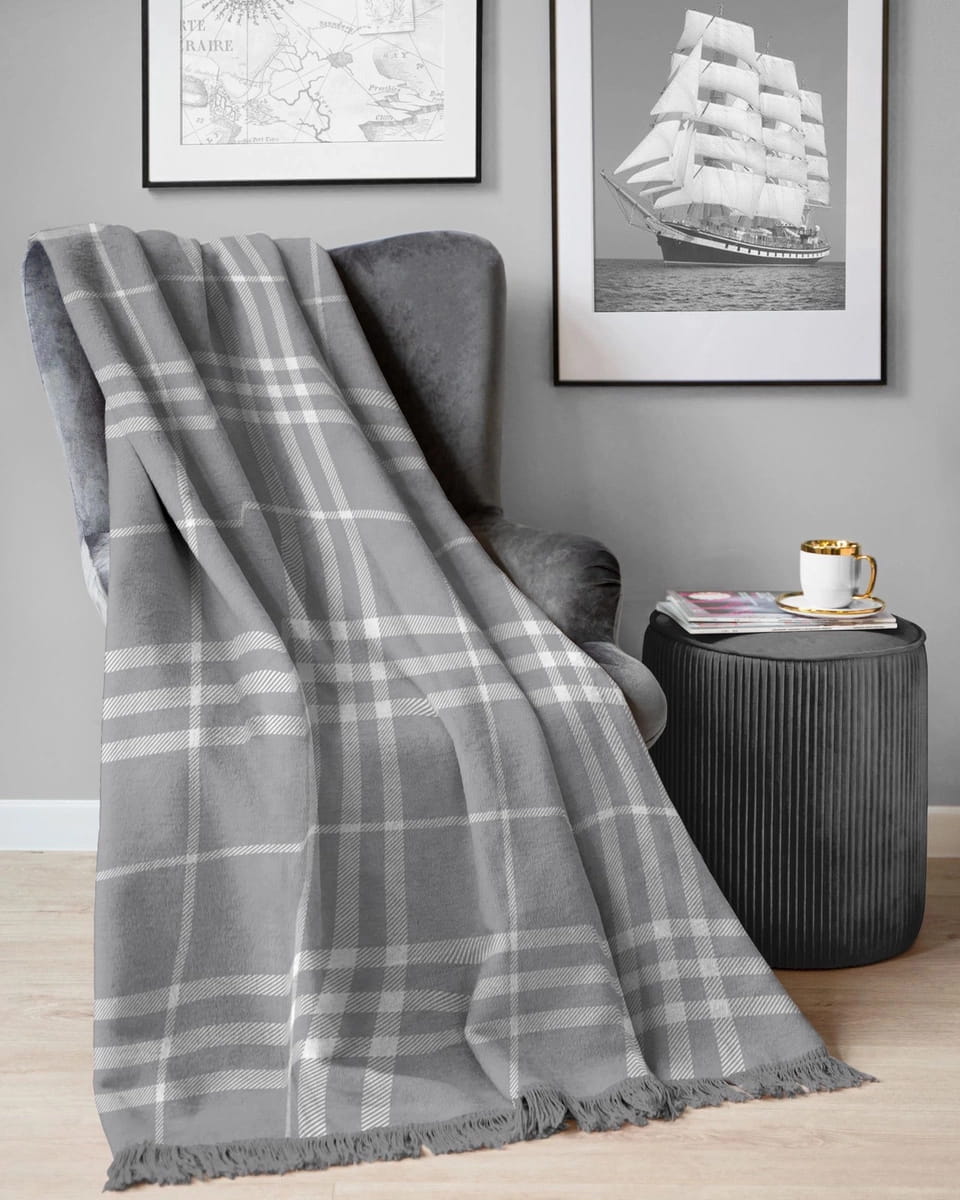 koc bawełniano-akrylowy w kratę 150x200 z frędzlami fashion collection 123 JB DETEXPOL