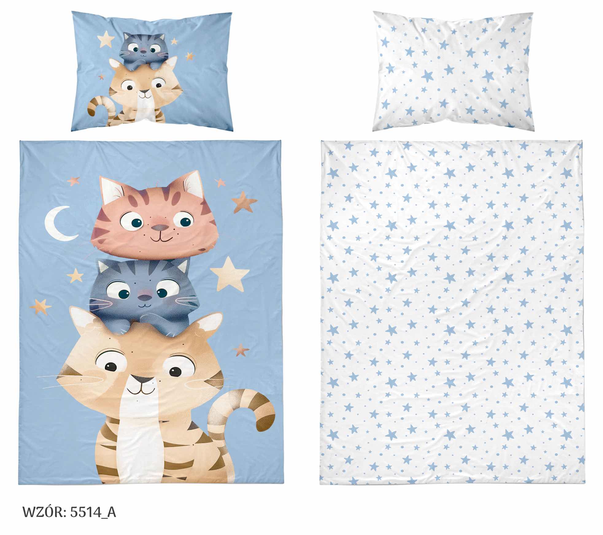 kociaki słodziaki dwustronna pościel bawełniana maya moo 100x135 + 40x60 do łóżeczka 5514A