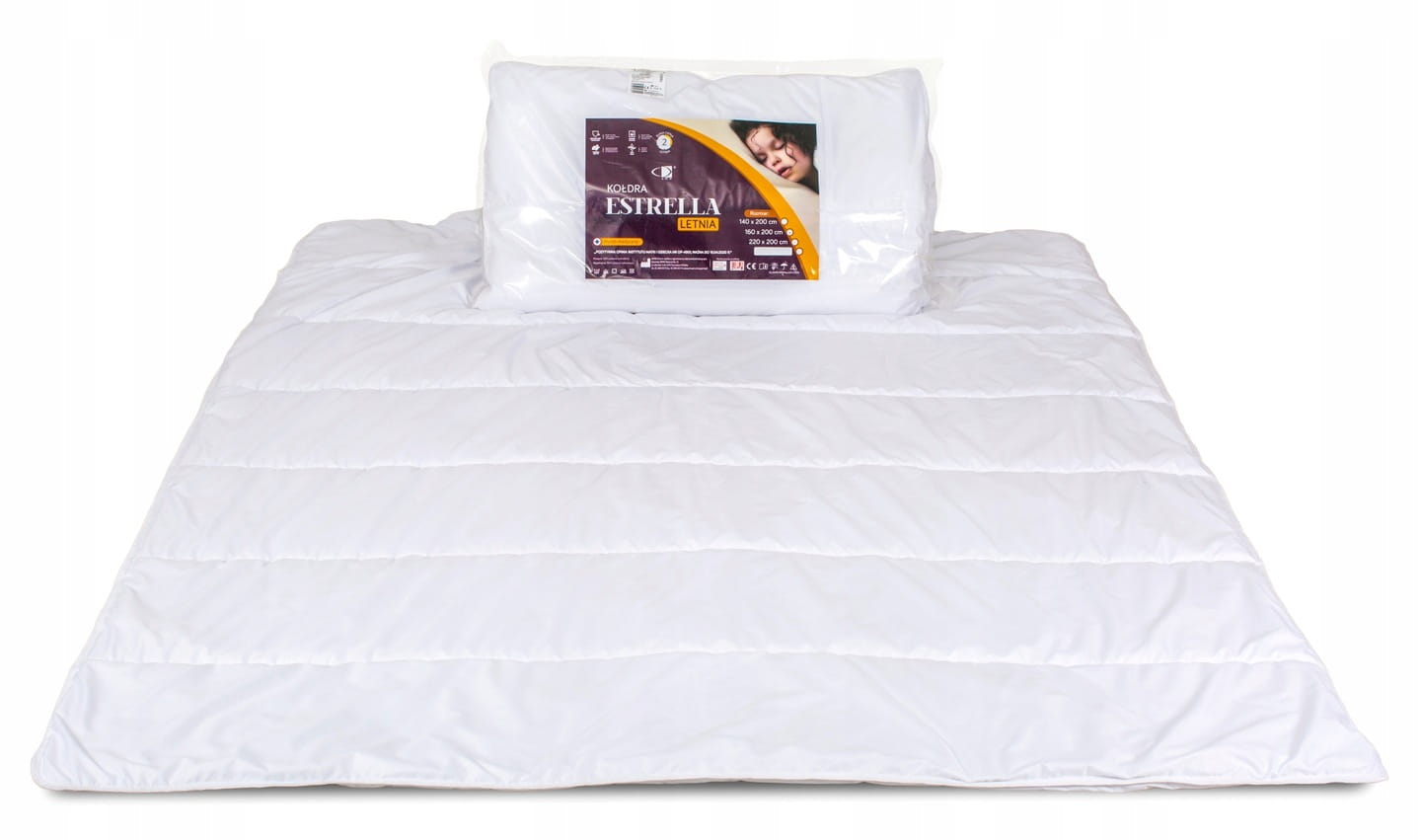 Kołdra letnia Estrella 220x200 to wykonana z delikatnej i miękkiej w dotyku mikrofibry lekka kołdra na upalne noce. Kołdra na lato Estrella 220x200 nie sprzyja rozwojowi zarówno roztoczy, bakterii oraz grzybów a można ją prać w 60 stopniach. Kołdra letnia Estrella to wyrób medyczny o przyznanym numerze PL/CA01 04605/W dlatego mamy pewność, że produkt i użyte do jego produkcji materiały są przebadane.