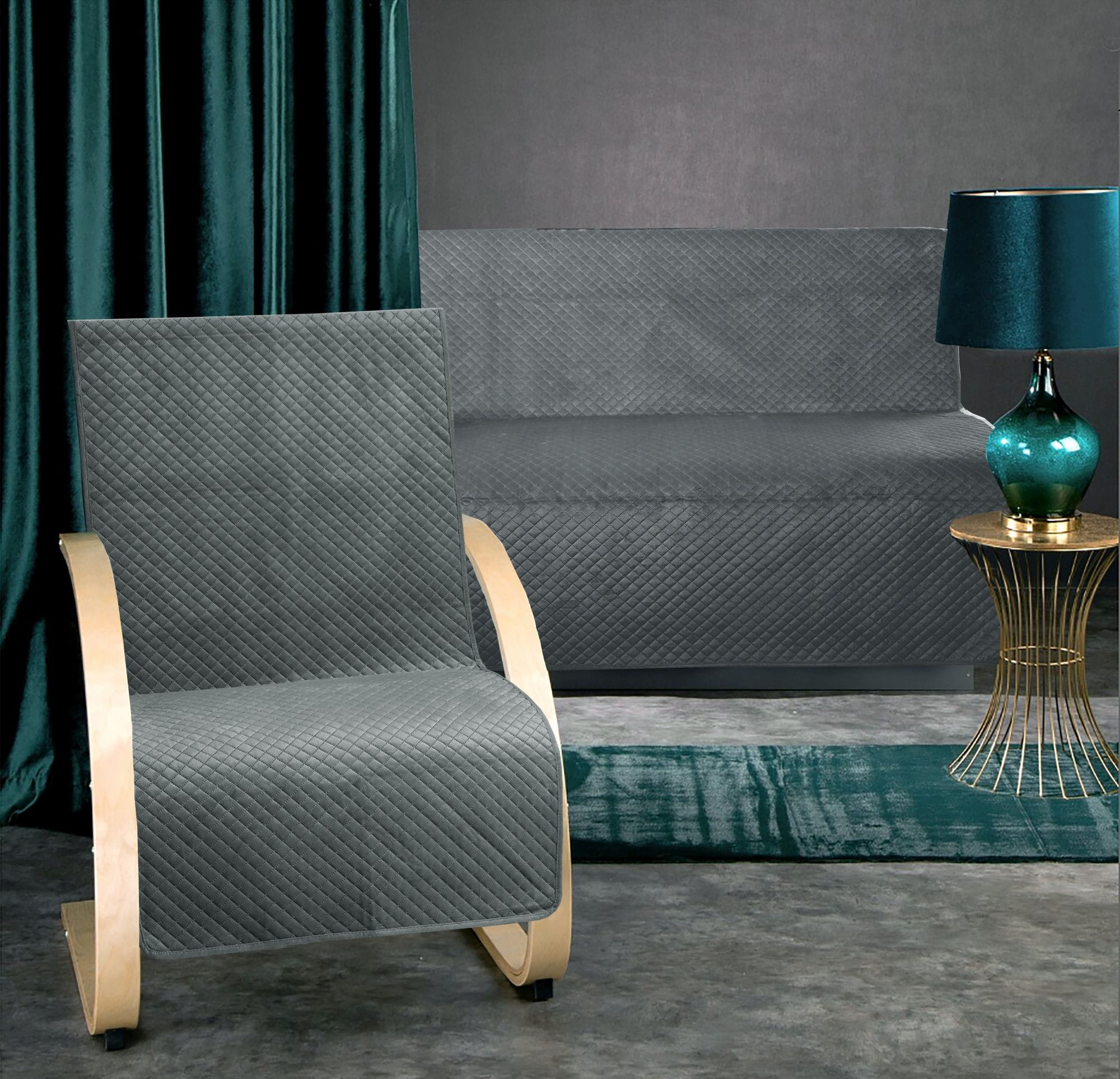 komplet 2 ciemno szarych narzut na fotel velvet 70x160 GREY 41 MESA