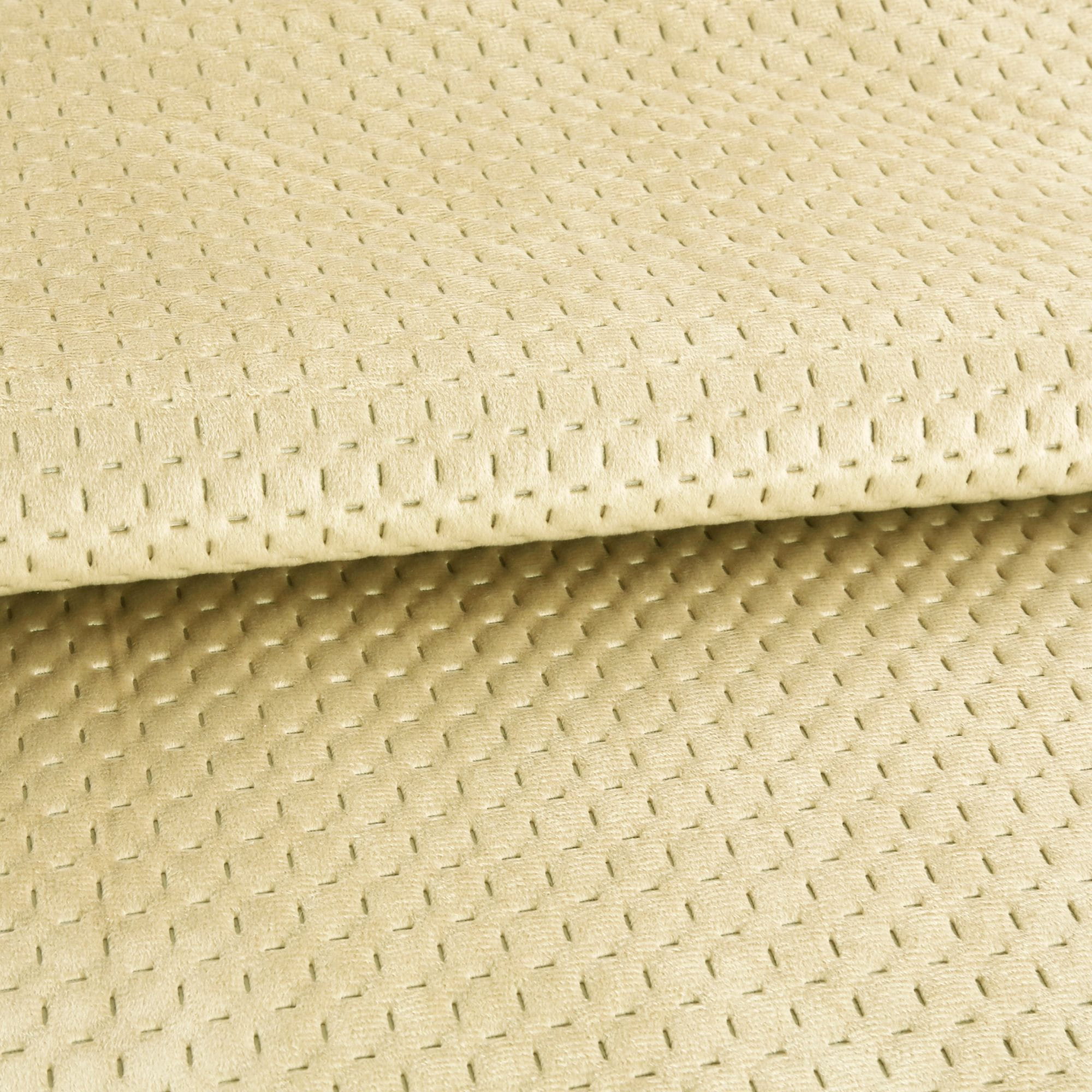 Narzuta pikowana na fotel Premium New Beige 70x160 w kolorze beżowym została wykonana na zlecenie firmy Mesa z 100% poliestru. Pełni ona nie tylko funkcję dekoracyjną w naszym salonie elegancko prezentując się na fotelu, ale jednocześnie zabezpiecza fotel przed wybrudzeniem. Narzuta została starannie wykonana i ma jednobarwny kolor oraz posiada delikatny połysk a na brzegach obszyta jest lamówką. Eleganckie pikowanie zostało wykonane metodą hot press czyli bez użycia nici i igieł dlatego jej powierzchnia jest miła i przyjemna w dotyku. Pikowanie za pomocą termo-zgrzewania ma wiele zalet a największym plusem jest powstanie trwałego materiału o dużej wytrzymałości.