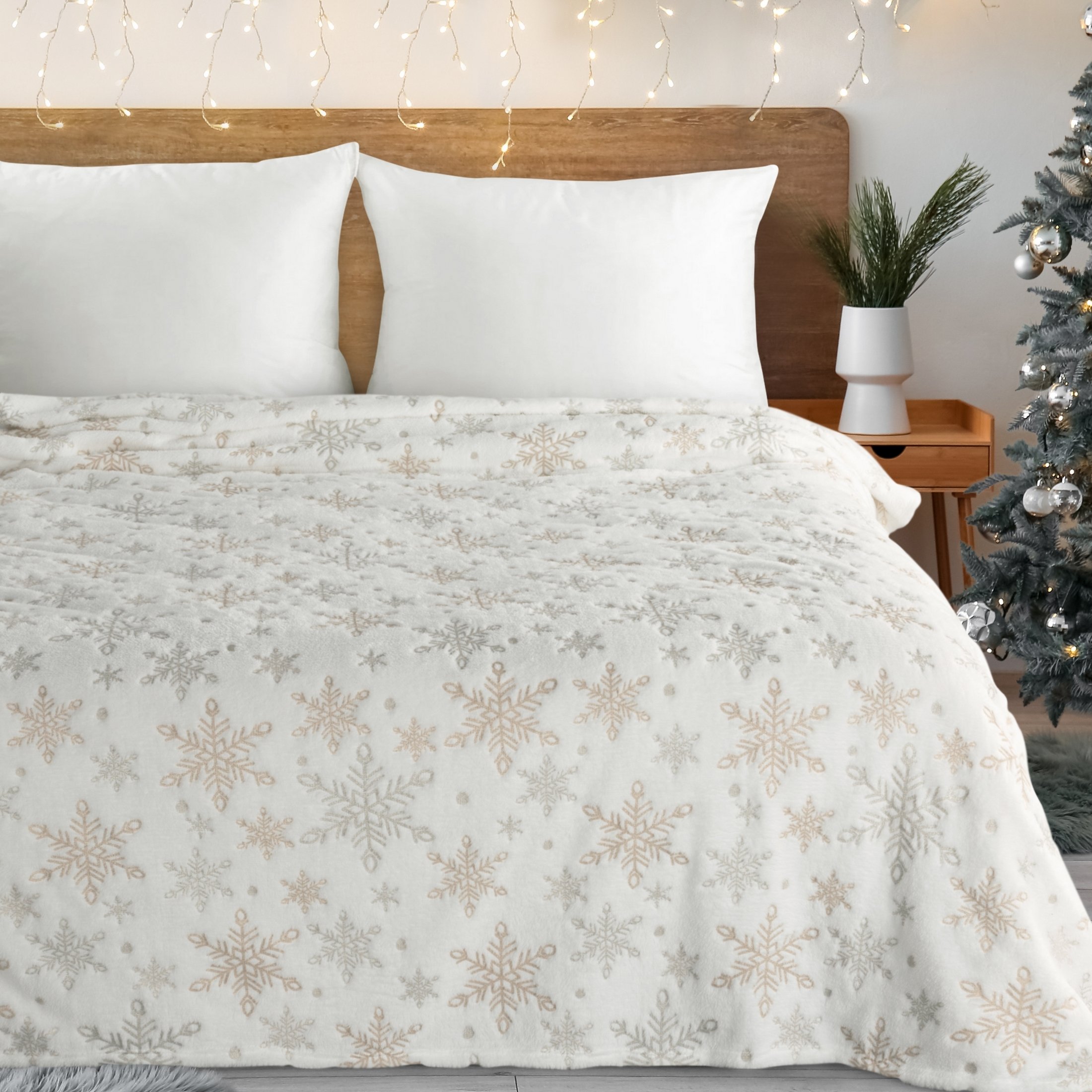 kremowo biały koc świąteczny śnieżynki 150x200 EUROFIRANY