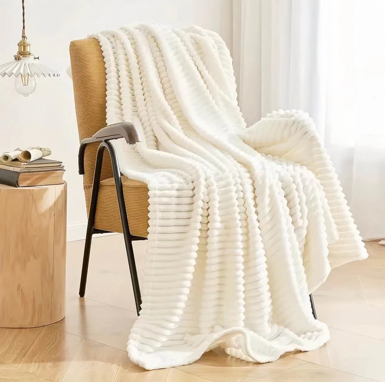 kremowy koc w pasy paris luxu 160x200 mikrofibra