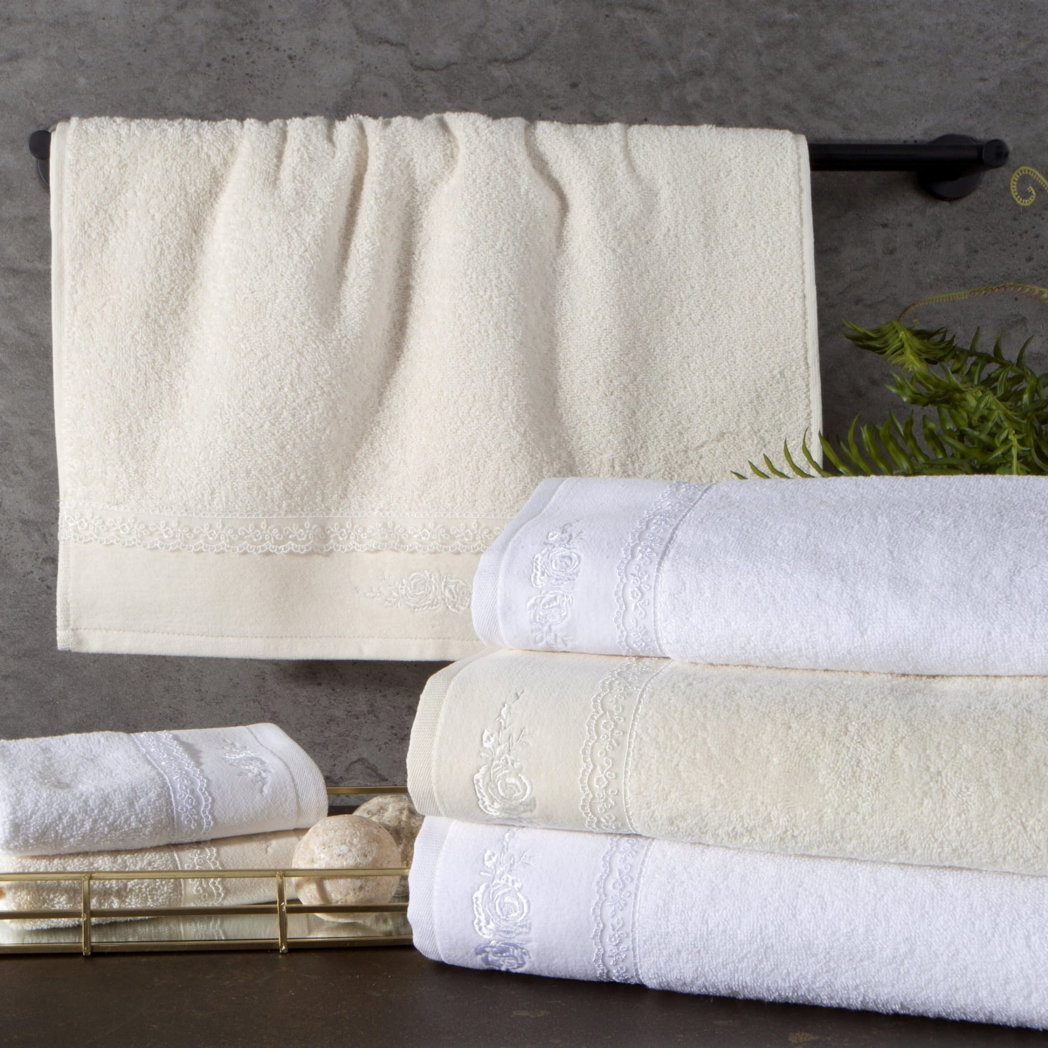 Ręcznik bawełniany Sisi w kolorze kremowym został wyprodukowany przez znaną i cenioną markę Eurofirany. Został wykonany z wysokiej jakości przędzy frotte, składającej się w 100% bawełny, która zapewnia wysokie właściwości higroskopijne czyli zdolność pochłaniania wilgoci. Charakteryzuje się wysoką i najbardziej optymalną do codziennego użytku gramaturą 500 g/m², dzięki której szybko schnie. Dodatkowo ręcznik Sisi cechuje się przyjemnym i miękkim chwytem z piękną welurową bordiurą w formie serduszek wypełnionych różyczkami. Elegancka ale minimalistyczna część ozdobna świetnie odnajdzie się w klasycznych jak i nowoczesnych wnętrzach tym bardziej, że ręcznik występuje w bardzo bogatej kolorystyce. Z pewnością zadowolą klientów szukających wysokiej jakości w połączeniu z atrakcyjną ceną i eleganckim designem.