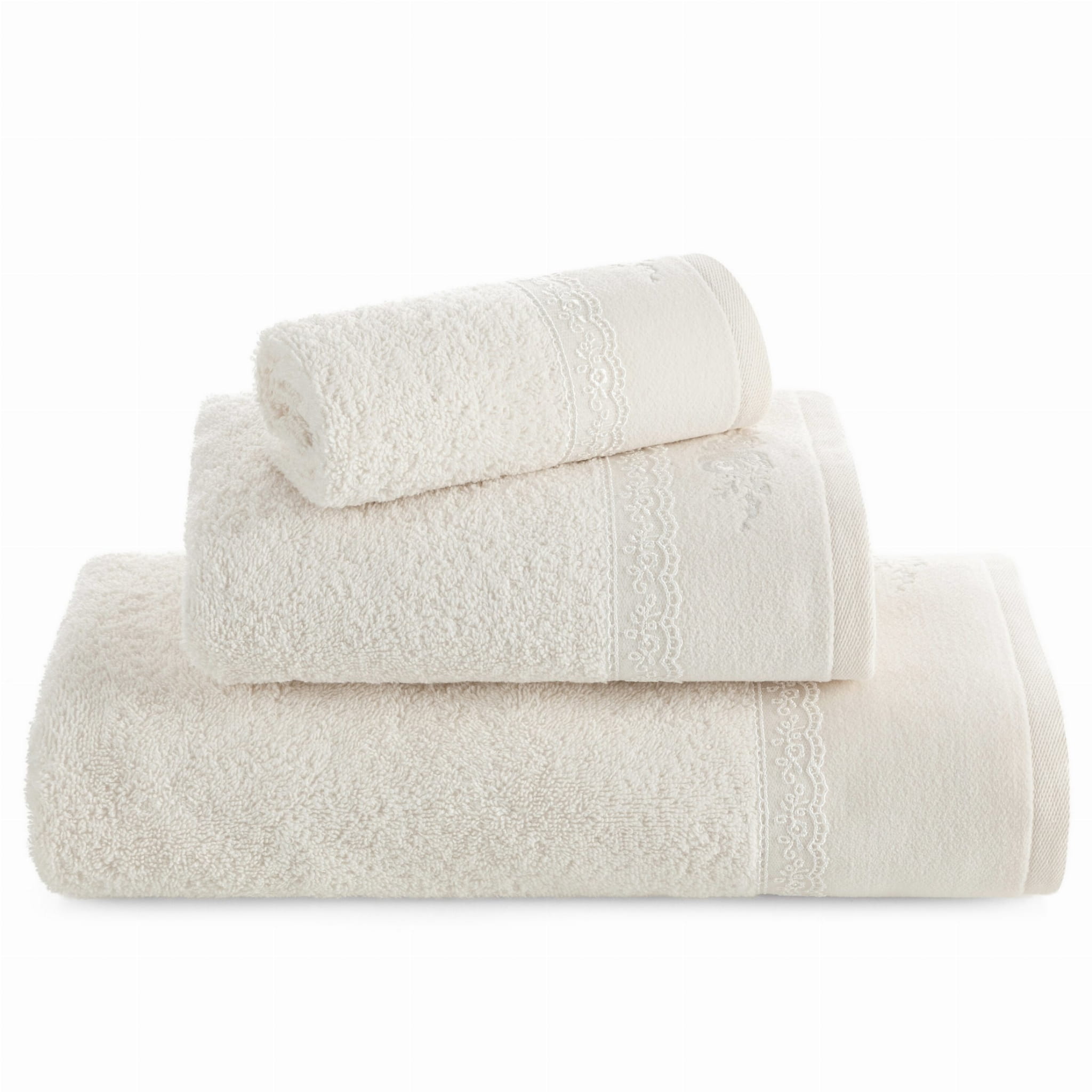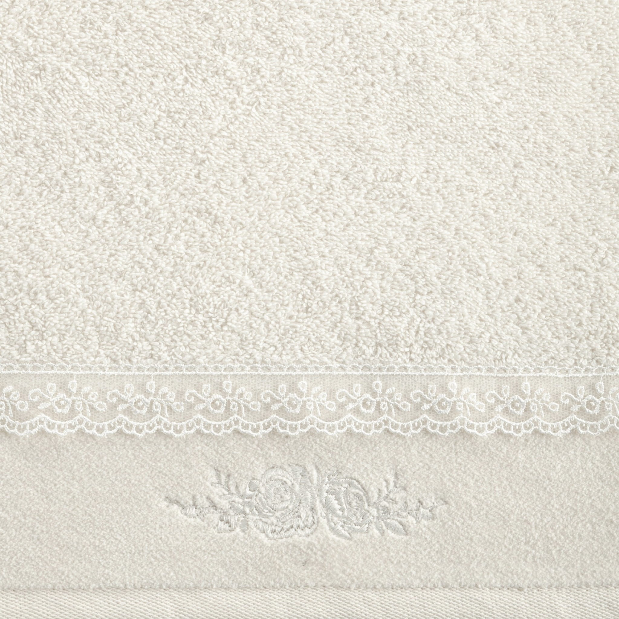 Ręcznik kąpielowy Sisi z piękną ozdobną koronką idealnie sprawdza się w roli ręcznika codziennego jak i dekoracyjnego. Dzianina frotte, z której został wyprodukowany ręcznik posiada Certyfikat Oeko-Tex Standard 100 co oznacza, że została przebadana i nie zawiera substancji szkodliwych dla człowieka oraz substancji powodujących alergie.