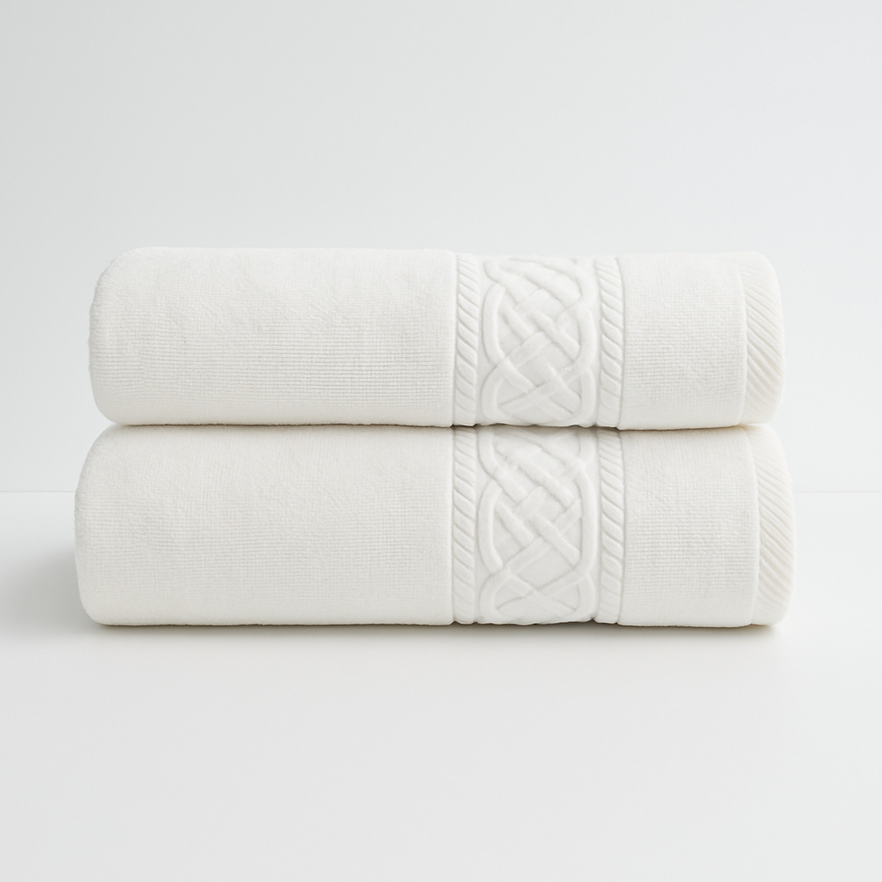 Ręcznik bawełniany Sydney w kolorze kremowym został wyprodukowany przez markę Legs. Wykonany z wysokiej jakości przędzy frotte, składającej się w 100% bawełny, która zapewnia wysokie właściwości higroskopijne czyli zdolność pochłaniania wilgoci. Charakteryzuje się wysoką i najbardziej optymalną do codziennego użytku gramaturą 500 g/m², dzięki której szybko schnie. Dodatkowo ręcznik Sydney cechuje się przyjemnym i miękkim chwytem z piękną plecioną, geometryczną bordiurą. Elegancka ale minimalistyczna część ozdobna świetnie odnajdzie się w klasycznych jak i nowoczesnych wnętrzach tym bardziej, że ręcznik występuje w bardzo bogatej kolorystyce. Z pewnością zadowolą klientów szukających wysokiej jakości w połączeniu z atrakcyjną ceną i eleganckim designem.