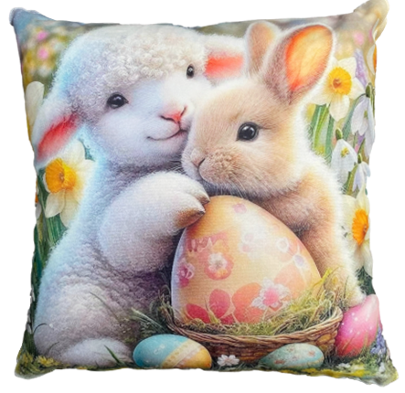 króliczek z owieczką poszewka na wielkanoc drukowana z miękkiego weluru