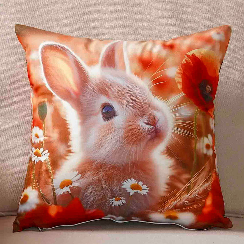 królik w makach poszewka 40x40 drukowana z miękkiego weluru 2 sztuki PA-290