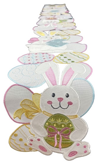 Szarfa dekoracyjna Królik Wielkanocny jest doskonałym uzupełnieniem wystroju Świątecznego Stołu. Bieżnik ozdobiony eleganckim haftem co pozwala w prosty i szybki sposób wzbogacić każde wnętrze, dodać mu nastroju Świątecznego.