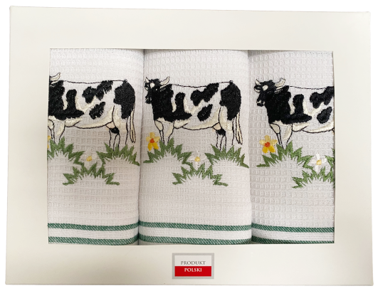 krowa komplet ścierek kuchennych haftowanych pudełko