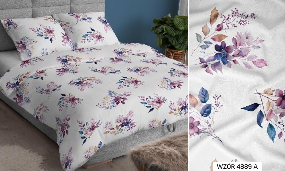 Pościel bawełniana luksusowa Kwiaty 4889A produkowana jest z najwyższej jakości przędz czesanych, które sprawiają, że tkanina ma perfekcyjnie jednorodną powierzchnię, estetyczny wygląd i niesamowitą miękkość. Dzięki dodatkowemu procesowi wyczesywania włókien nie posiadają one zgrubień i innych nieczystości pozostałych po procesie przędzenia bawełny. Gęstość tkaniny to aż 68 nitek na każde 10 cm². Dodatkowo tkanina została poddana procesowi sanforyzacji czyli wykurczania więc rozmiar pościeli pozostaje bez zmian w trakcie długiego użytkowania. Takie parametry pozwalają nazywać tkaninę bawełną Renforce.