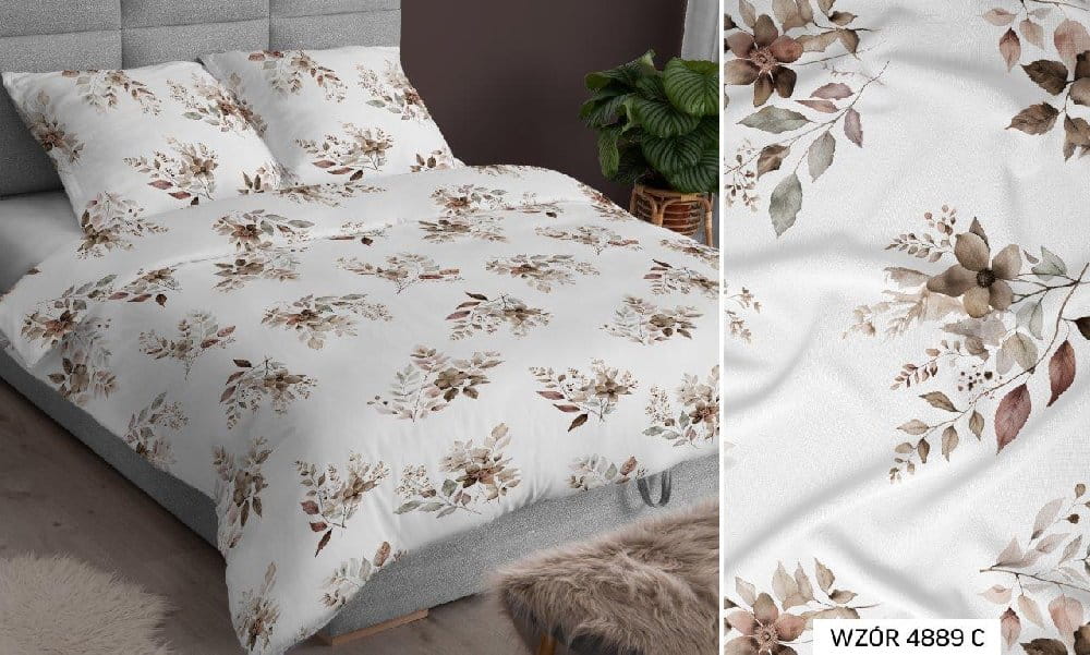 Pościel bawełniana luksusowa Kwiaty 4889C produkowana jest z najwyższej jakości przędz czesanych, które sprawiają, że tkanina ma perfekcyjnie jednorodną powierzchnię, estetyczny wygląd i niesamowitą miękkość. Dzięki dodatkowemu procesowi wyczesywania włókien nie posiadają one zgrubień i innych nieczystości pozostałych po procesie przędzenia bawełny. Gęstość tkaniny to aż 68 nitek na każde 10 cm². Dodatkowo tkanina została poddana procesowi sanforyzacji czyli wykurczania więc rozmiar pościeli pozostaje bez zmian w trakcie długiego użytkowania. Takie parametry pozwalają nazywać tkaninę bawełną Renforce.