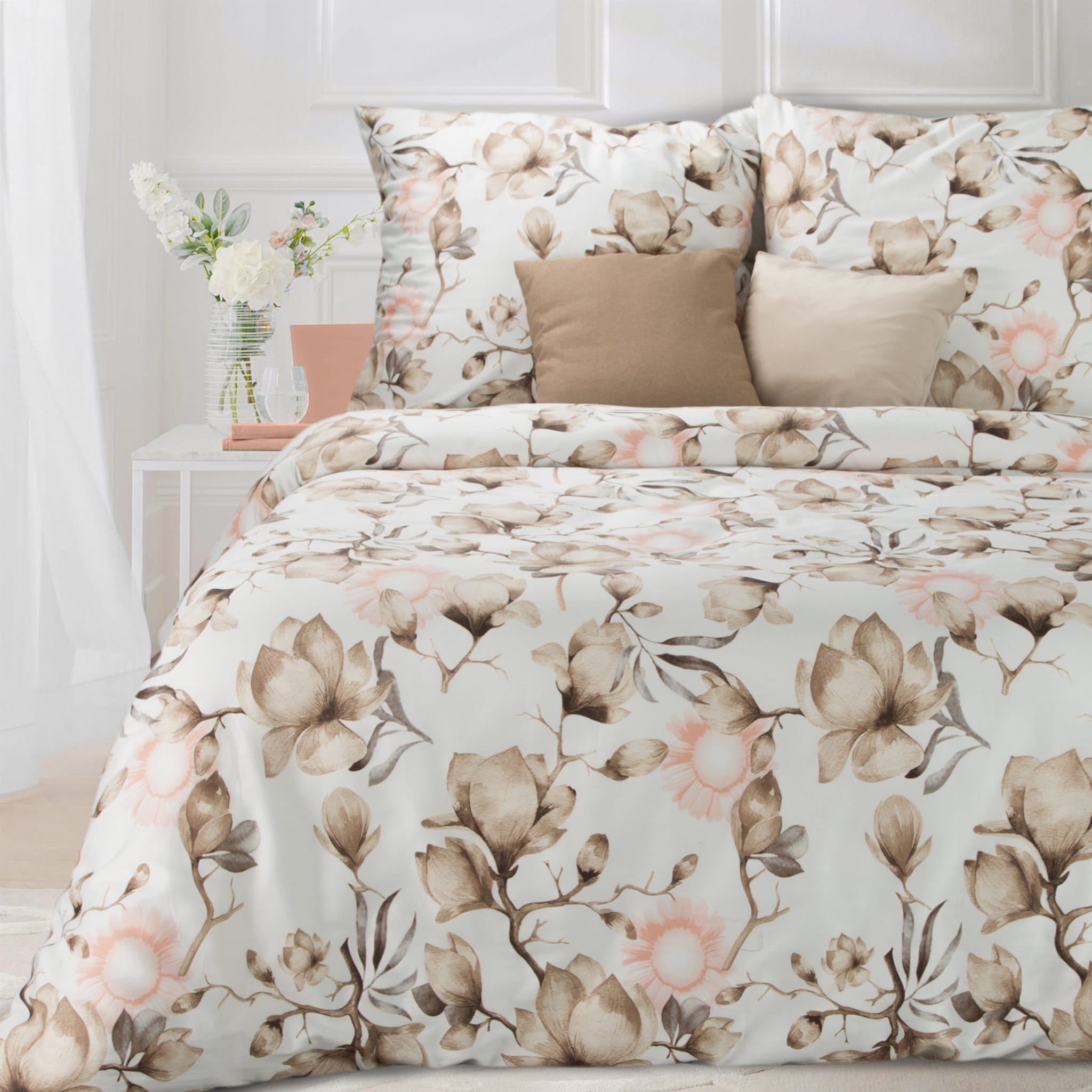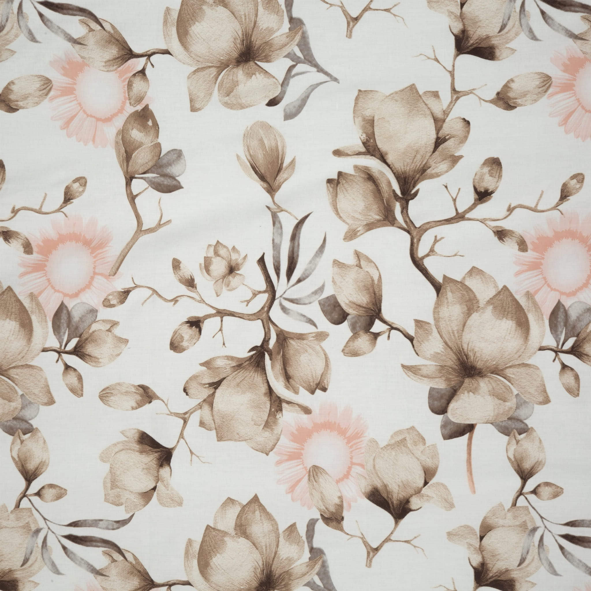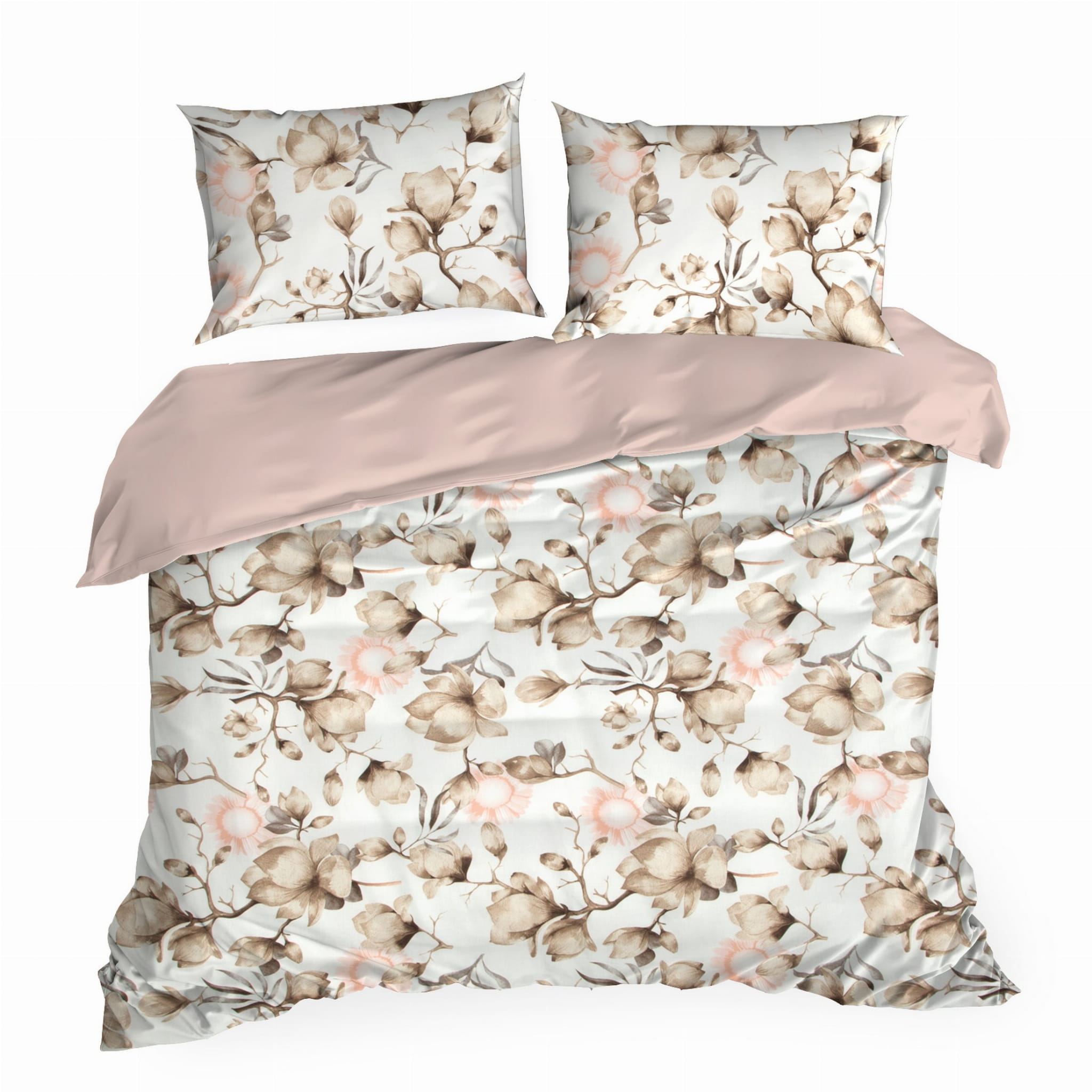 Komplet pościeli Spring 10, uszyto z wysokiej jakości satyny bawełnianej z nadrukiem kwiatów. Pościel została wyprodukowana na zlecenie marki Eurofirany. Nowoczesna technika nadruku rotacyjnego, gwarantuje wyrazisty wzór, nasycone kolory bieli, beżu i różu to niezwykłe przejścia kolorystyczne które sprawia, że nadruk nie traci swojej intensywności, nawet po wielu praniach. Proces sanforyzacji, daje gwarancję niezmienności rozmiaru, dzięki niemu pościel nie kurczy się nawet po wielu praniach. Pościel o gramaturze 115g/m² nie podrażnia skóry, jest przewiewna i niezwykle miła dla ciała.