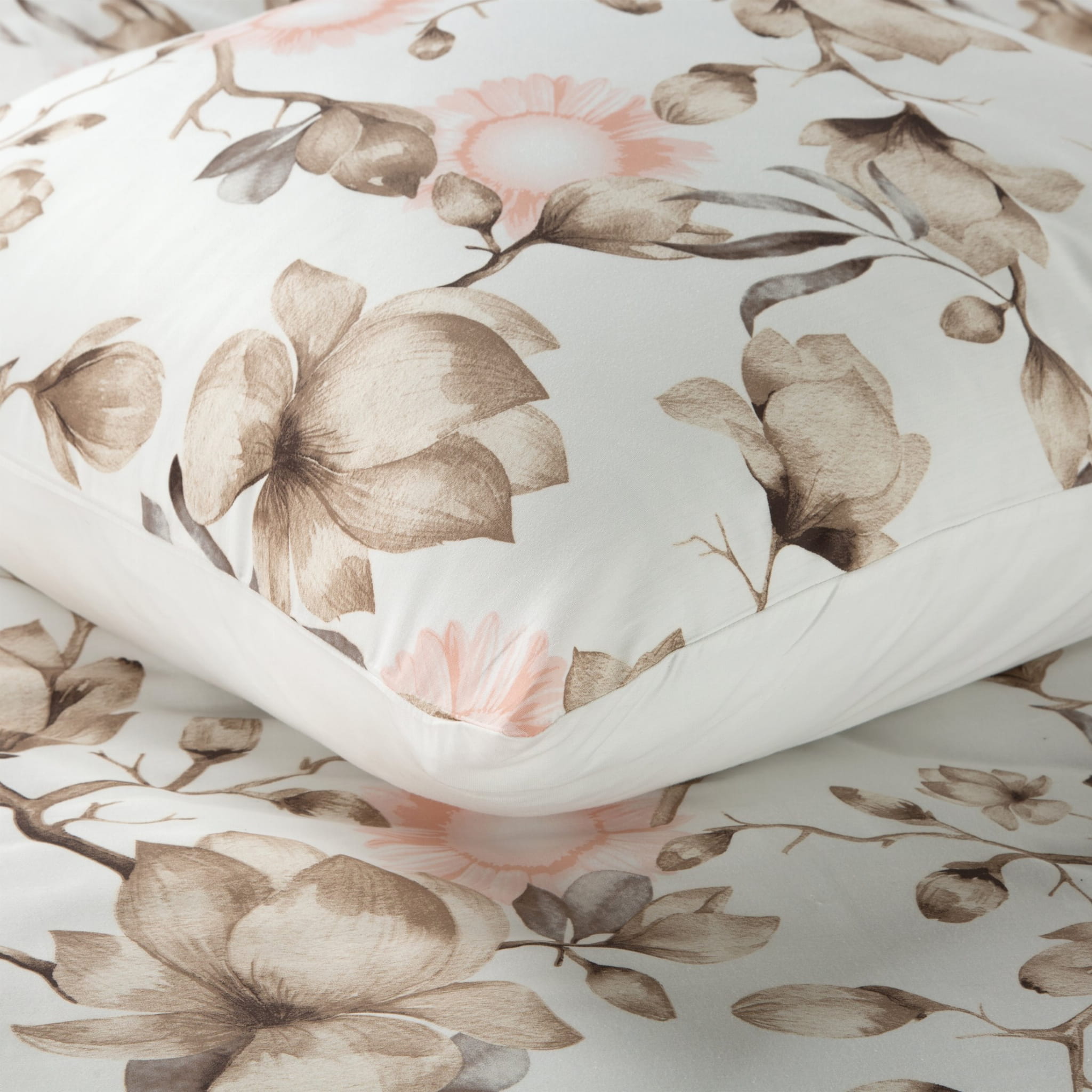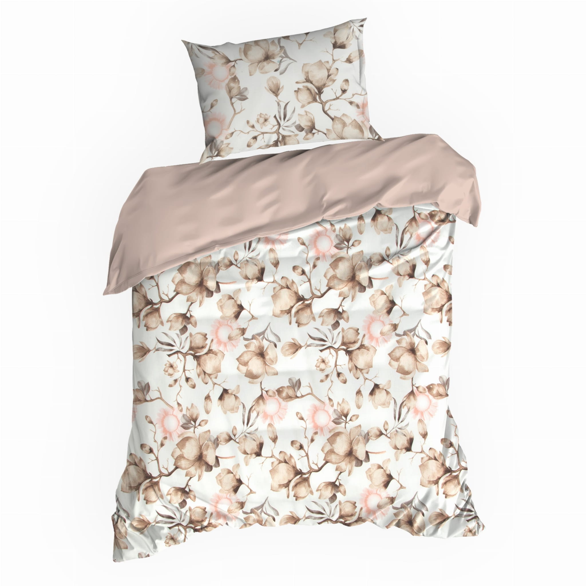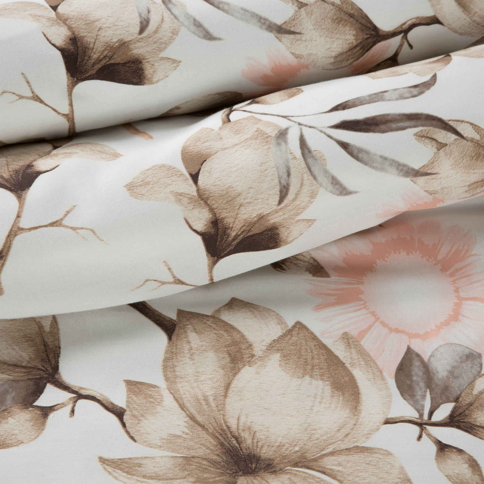 Komplet pościeli Spring 10, uszyto z wysokiej jakości satyny bawełnianej z nadrukiem kwiatów. Pościel została wyprodukowana na zlecenie marki Eurofirany. Nowoczesna technika nadruku rotacyjnego, gwarantuje wyrazisty wzór, nasycone kolory bieli, beżu i różu to niezwykłe przejścia kolorystyczne które sprawia, że nadruk nie traci swojej intensywności, nawet po wielu praniach. Proces sanforyzacji, daje gwarancję niezmienności rozmiaru, dzięki niemu pościel nie kurczy się nawet po wielu praniach. Pościel o gramaturze 115g/m² nie podrażnia skóry, jest przewiewna i niezwykle miła dla ciała.
