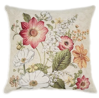 Piękna dekoracyjna poszewka Gobelin Kwiaty na poduszkę elegancko ozdobi Twoje wnętrze. Zasuwana na zamek błyskawiczny. Poszewka jednostronna - z tyłu jednobarwna tkanina.