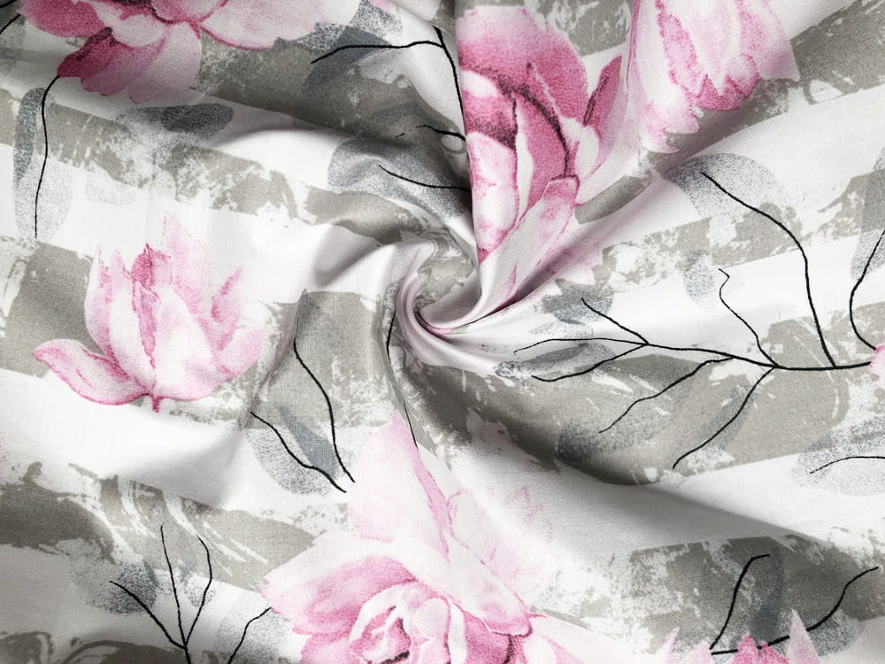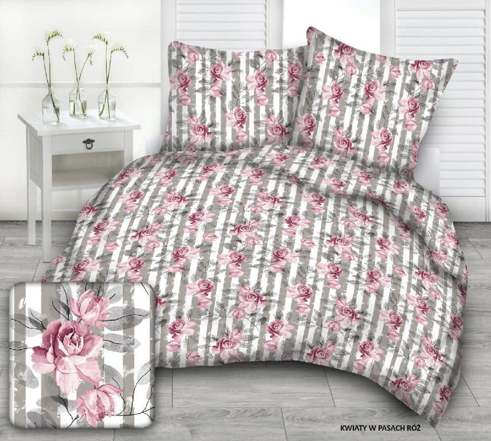 kwiaty w pasach róż pościel bawełniana 160x200 PREMIUM POLSKA
