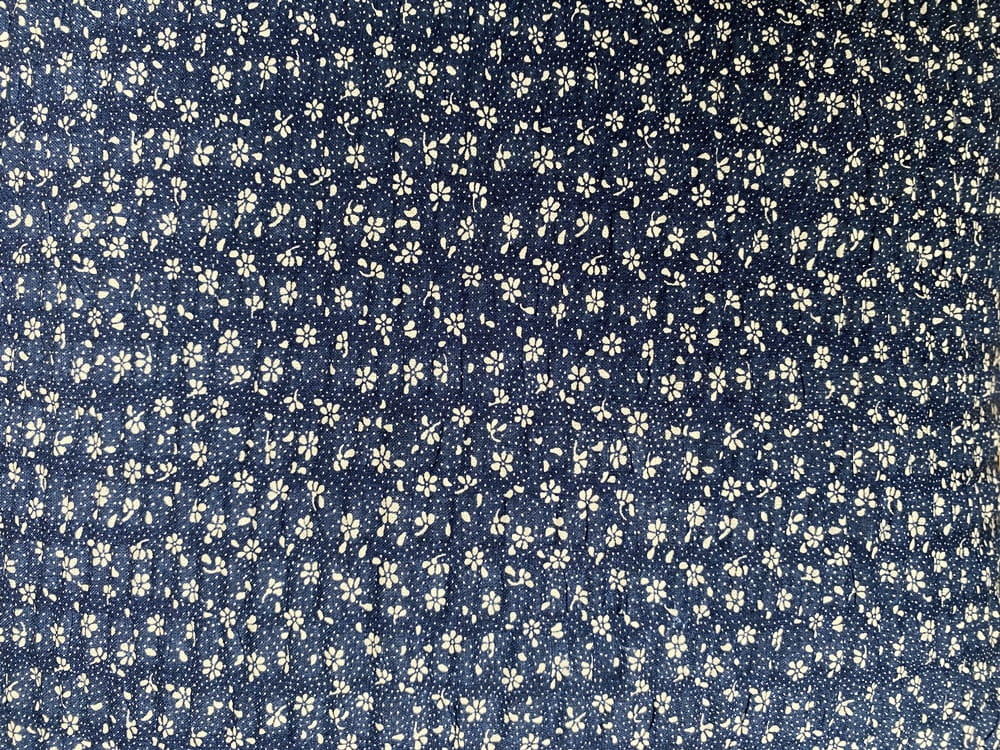 Pościel z kory premium z serii drobnej łączki z motywem drobniutkich kwiatuszków na granatowym tle. Uszyta w formie dwustronnej czyli na jednej stronie pościeli białe tło z miętowymi kwiatuszkami a druga strona w miętowe tło z białymi kwiatuszkami. Pościel kora premium granatowa łączka wykonana została z 100% z naturalnych włókien bawełnianych z wykorzystaniem przędz czesanych.. Dzięki dodatkowemu procesowi wyczesywania włókien nie posiadają one zgrubień i innych nieczystości pozostałych po procesie przędzenia bawełny. Gęstość tkaniny to aż 68 nitek na każde 10 cm². Jak powszechnie wiadomo bawełna to najlepszy materiał do produkcji bielizny pościelowej, a to przez swoje niewątpliwe zalety jakimi jest wysoka higroskopijność (zdolność pochłaniania wilgoci), odporność na rozciąganie oraz najważniejsza cecha jaką jest przyjazność dla osób uczulonych lub cierpiących na alergie. Dzięki dodatkowemu procesowi gofrowania czyli nadaniu tkaninie struktury przypominającej korę drzewa wyeliminowano wadę bawełny jakim jest podatność na gniecenie dlatego komplet pościeli zaraz po wysuszeniu gotowy jest do użytku i nie wymaga prasowania.