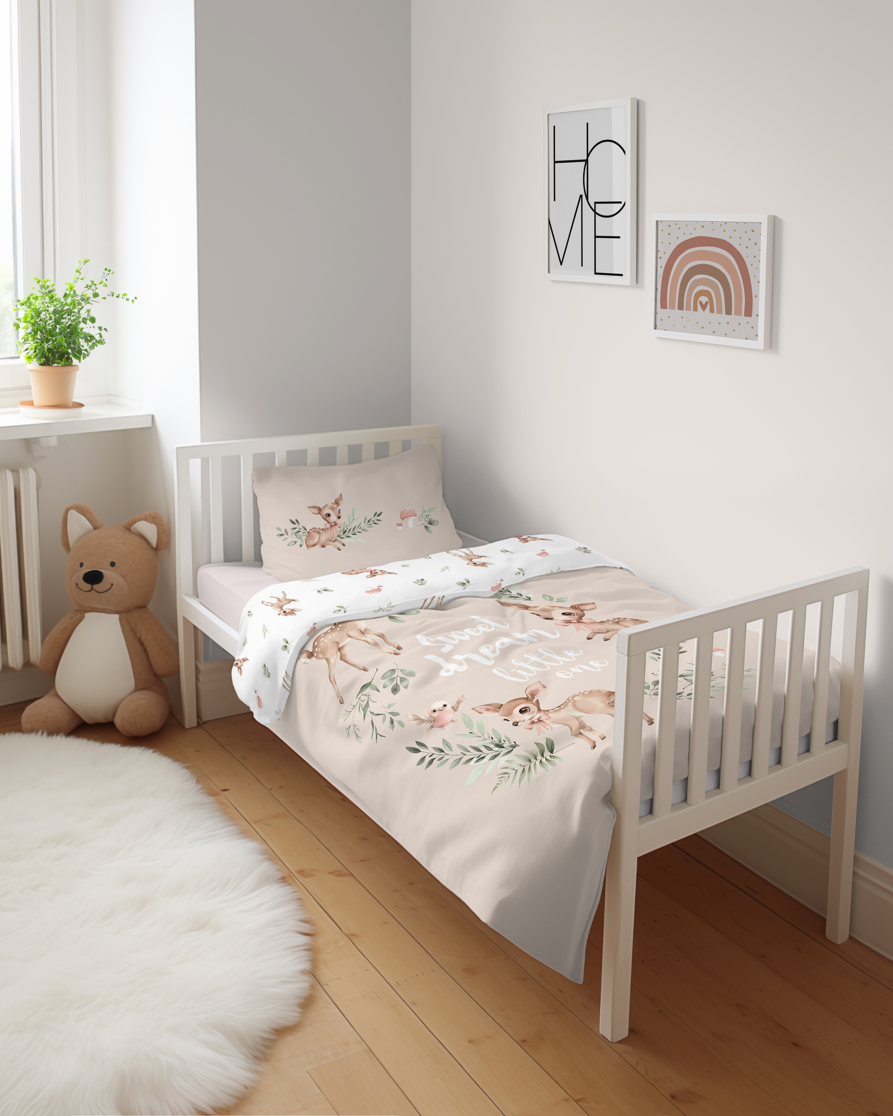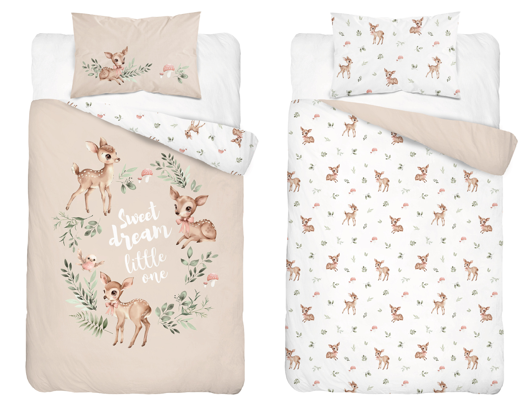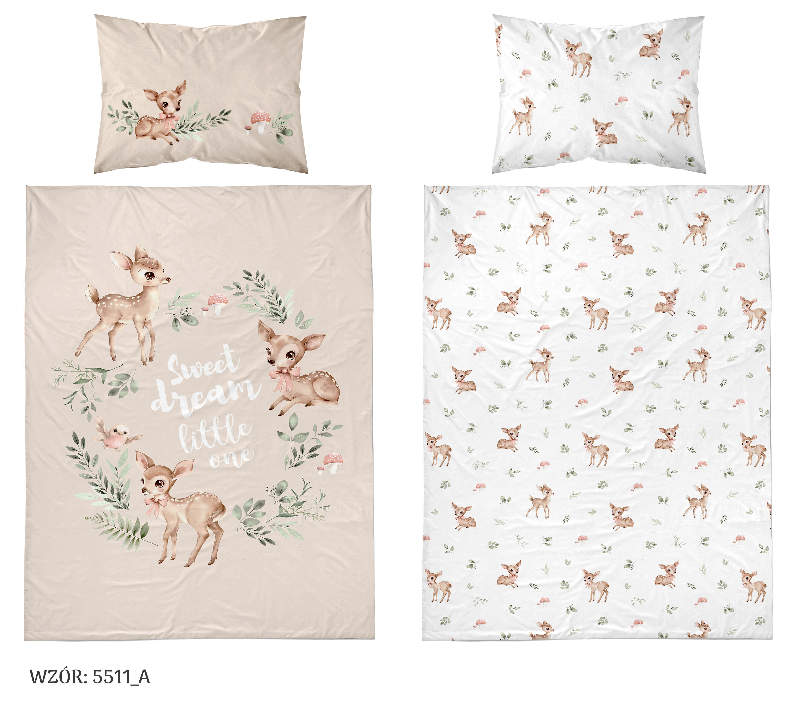 leśne skarby dwustronna pościel bawełniana maya moo 100x135 + 40x60 do łóżeczka 5511A