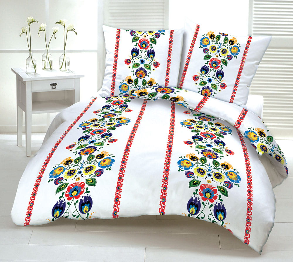 łowicka pościel kora bawełniana 160x200 biało czerwona