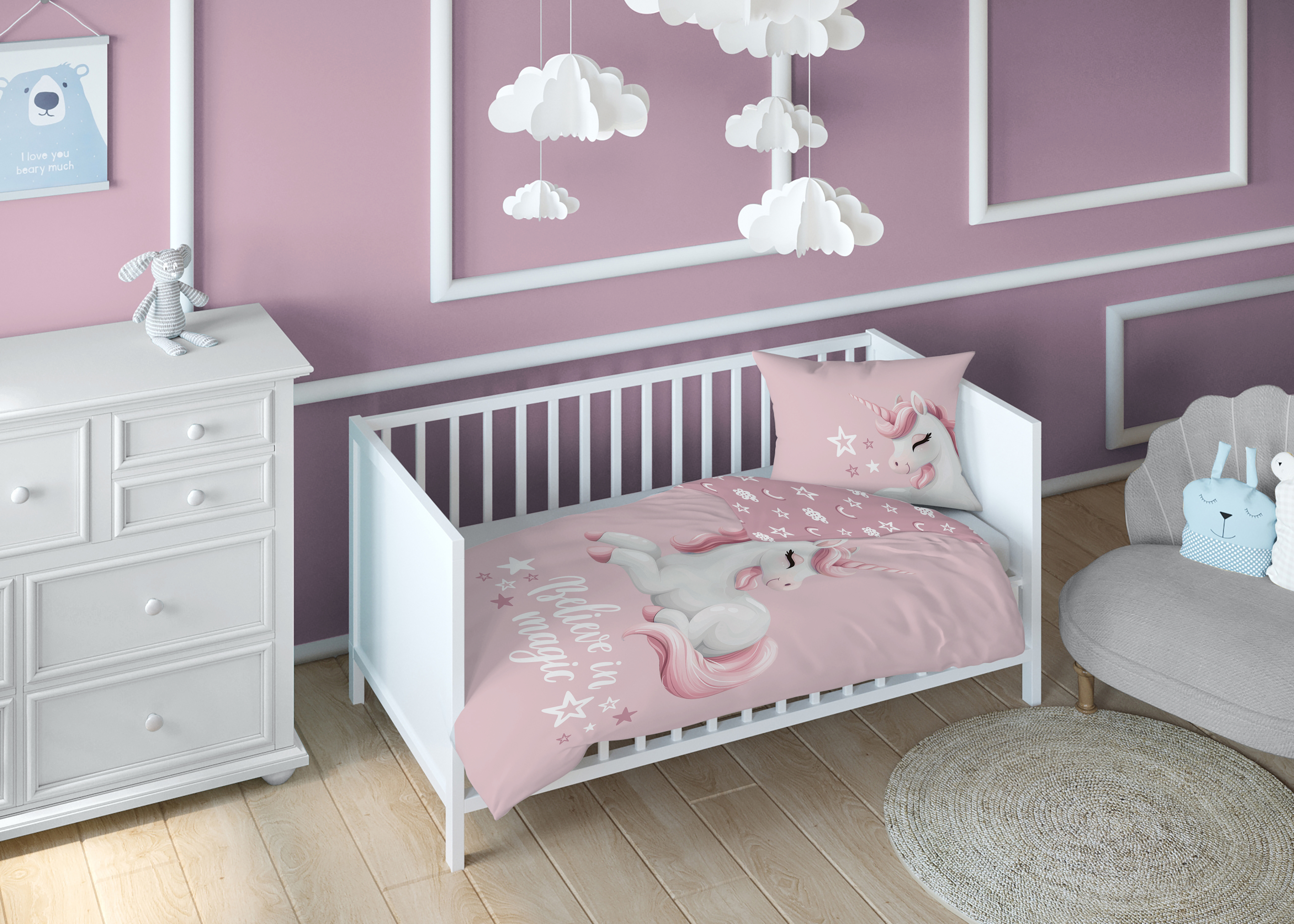 magiczny przyjaciel dwustronna pościel bawełniana maya moo 100x135 + 40x60 do łóżeczka 5517B