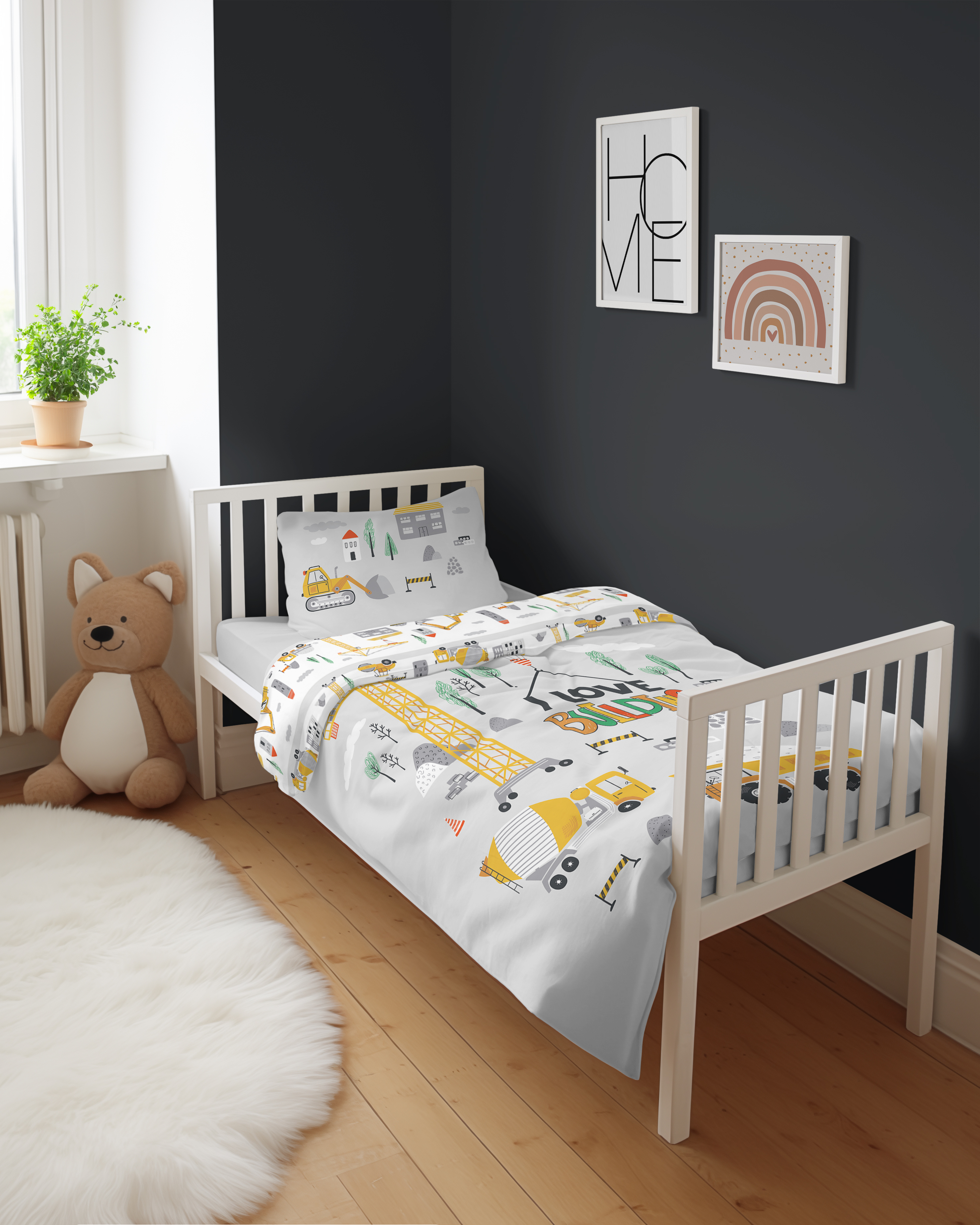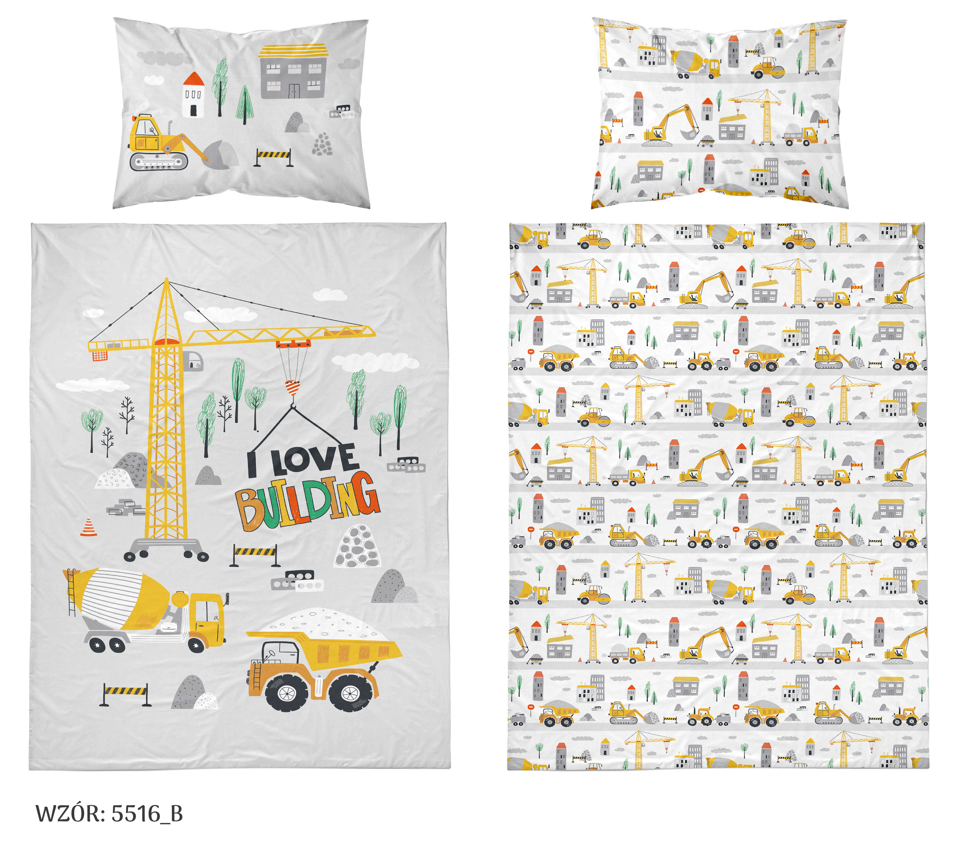 mały budowniczy dwustronna pościel bawełniana maya moo 100x135 + 40x60 do łóżeczka 5516B
