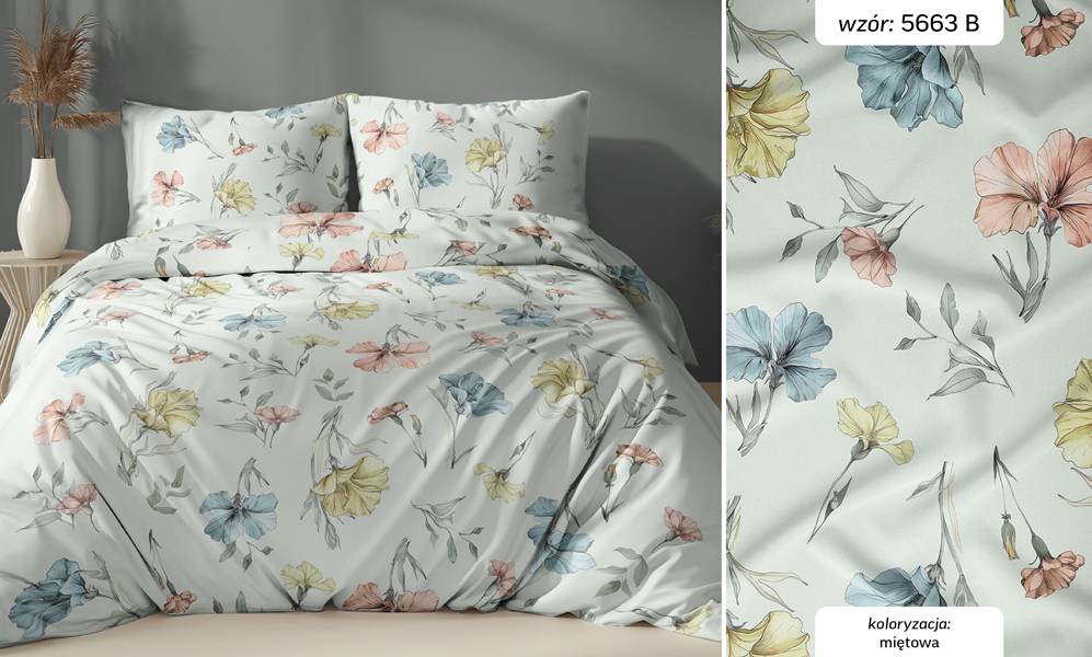 miętowa pościel flanelowa kwiatuszki polska 100% BAWEŁNA 5663B