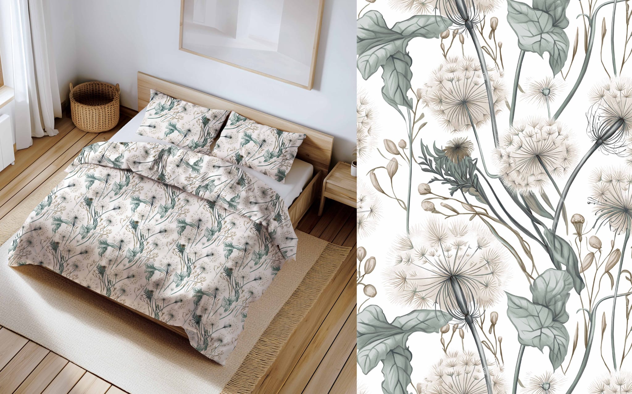 miętowe dmuchawce pościel bawełniana 220x200 PREMIUM POLSKA