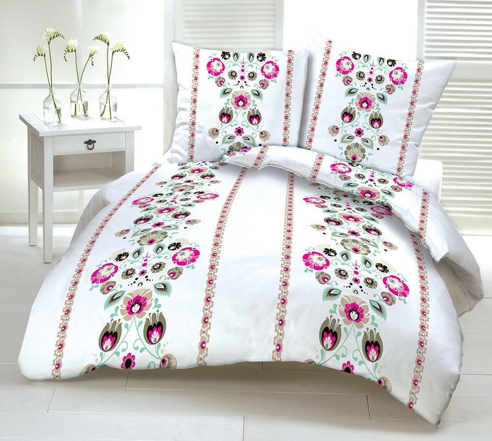 miętowo różowa pościel bawełniana łowicka 160x200 PREMIUM POLSKA