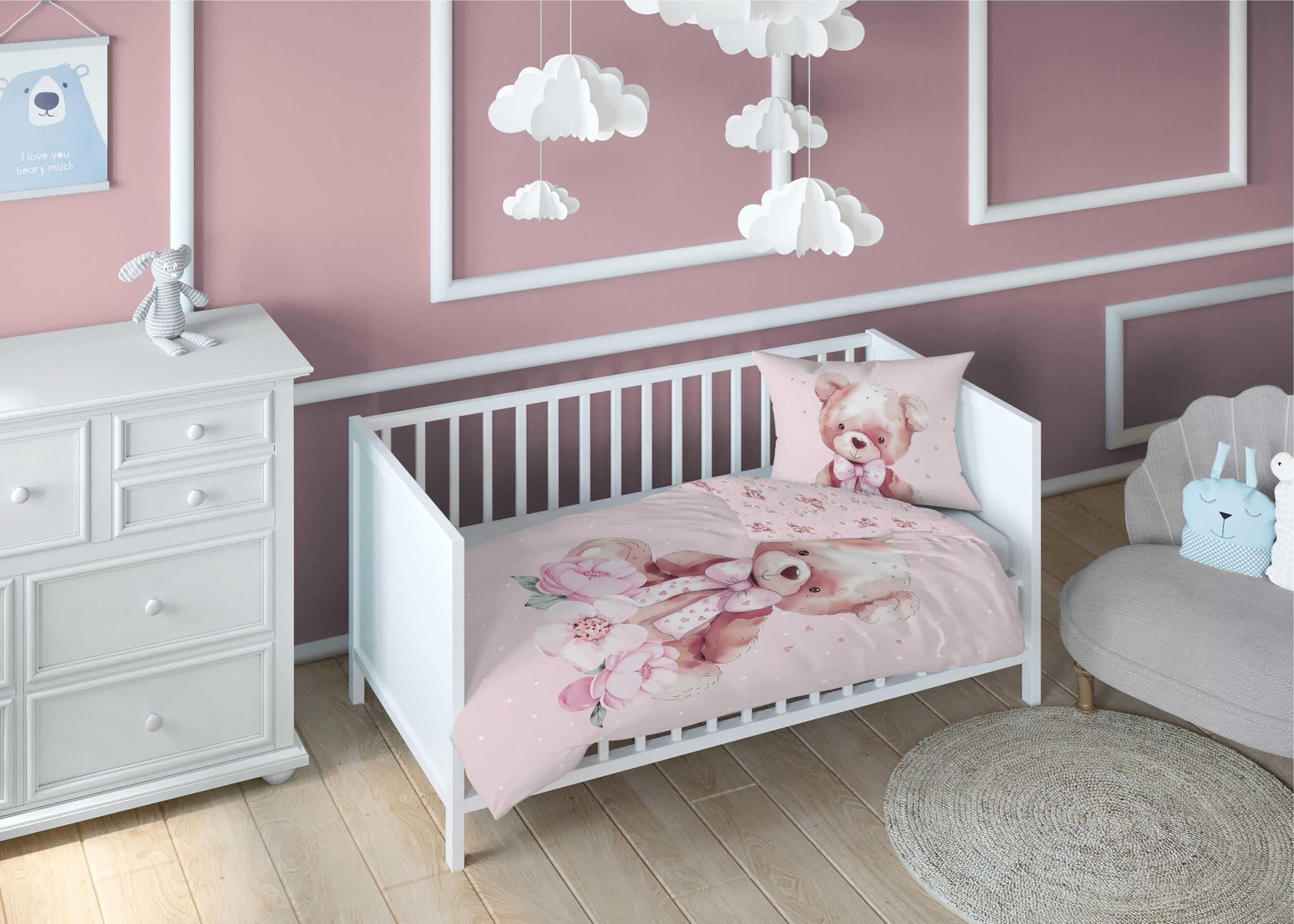 misio pysio dwustronna pościel bawełniana maya moo 100x135 + 40x60 do łóżeczka 5506B