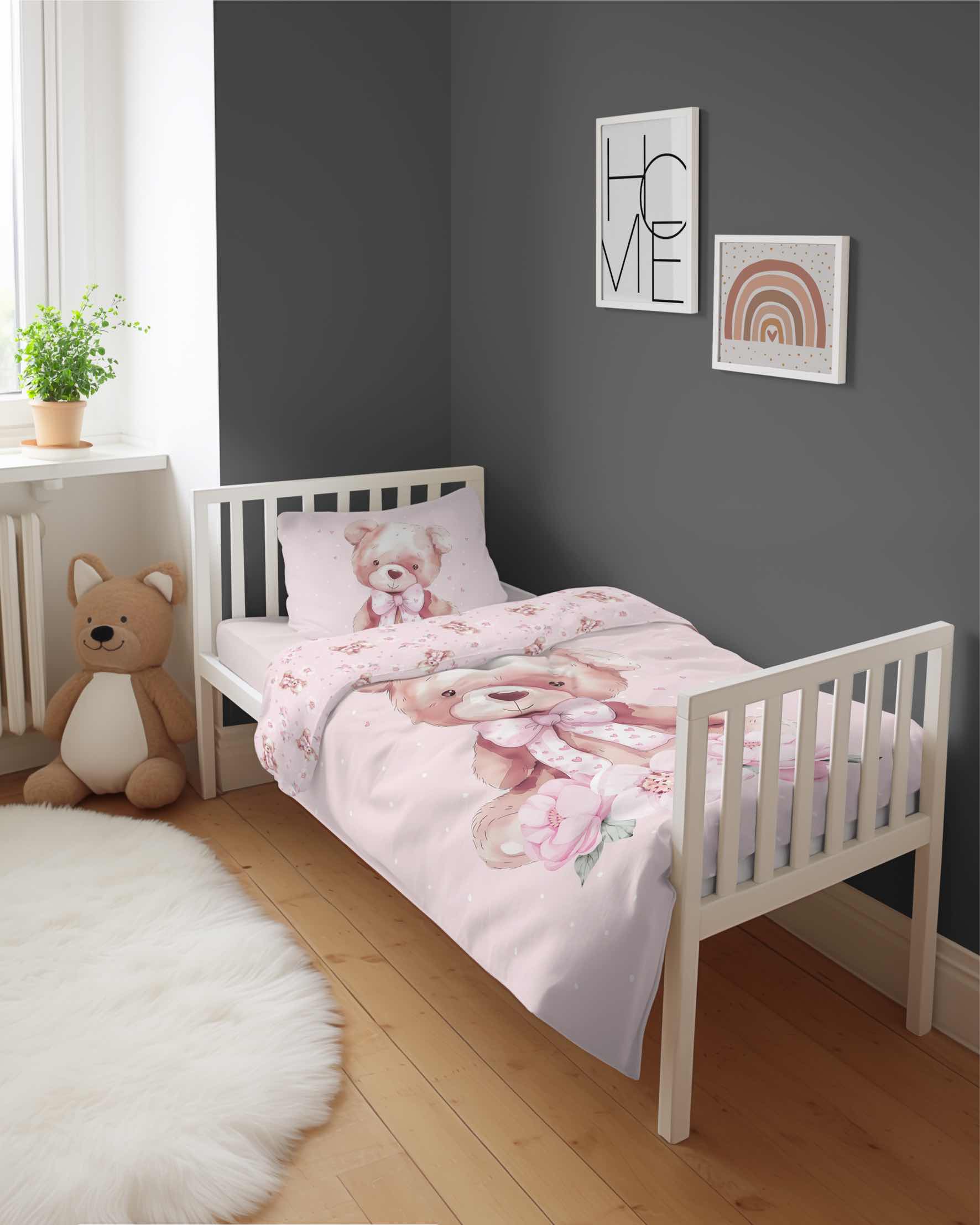 Kolorowy nadruk na pościeli wprowadzi do sypialni przyjazną atmosferę i pozwoli dziecku cieszyć się spokojnym snem. Dodatkowo wzór pościeli jest dwustronny więc możemy wybrać w jaki sposób zaaranżujemy sypialnie. Pościel dla dzieci do łóżeczka 100x135 zapinana jest na bezpieczny i atestowany zamek błyskawiczny, który ułatwia i przyspiesza wymianę pościeli.