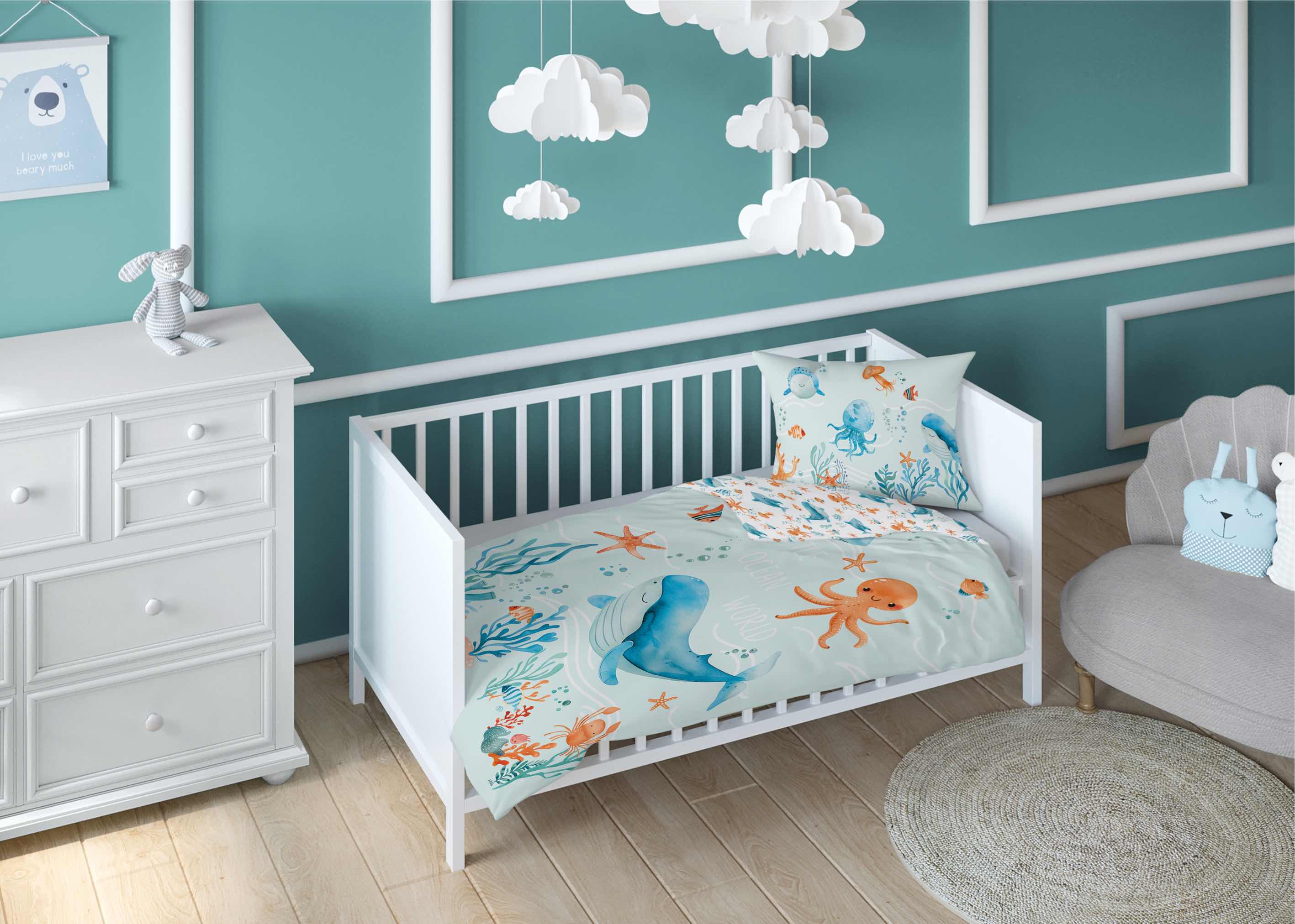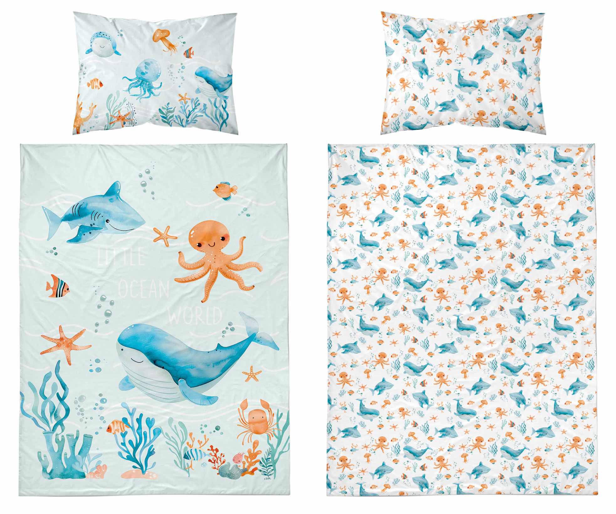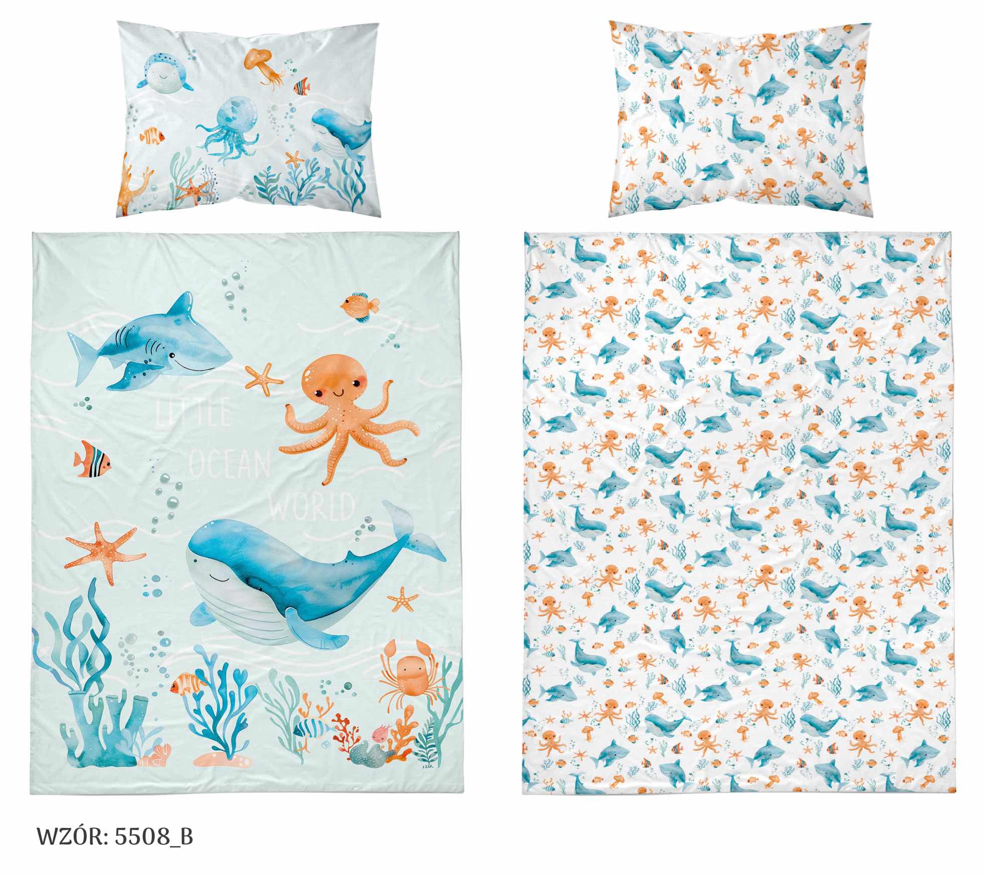 morska przygoda dwustronna pościel bawełniana maya moo 100x135 + 40x60 do łóżeczka 5508B