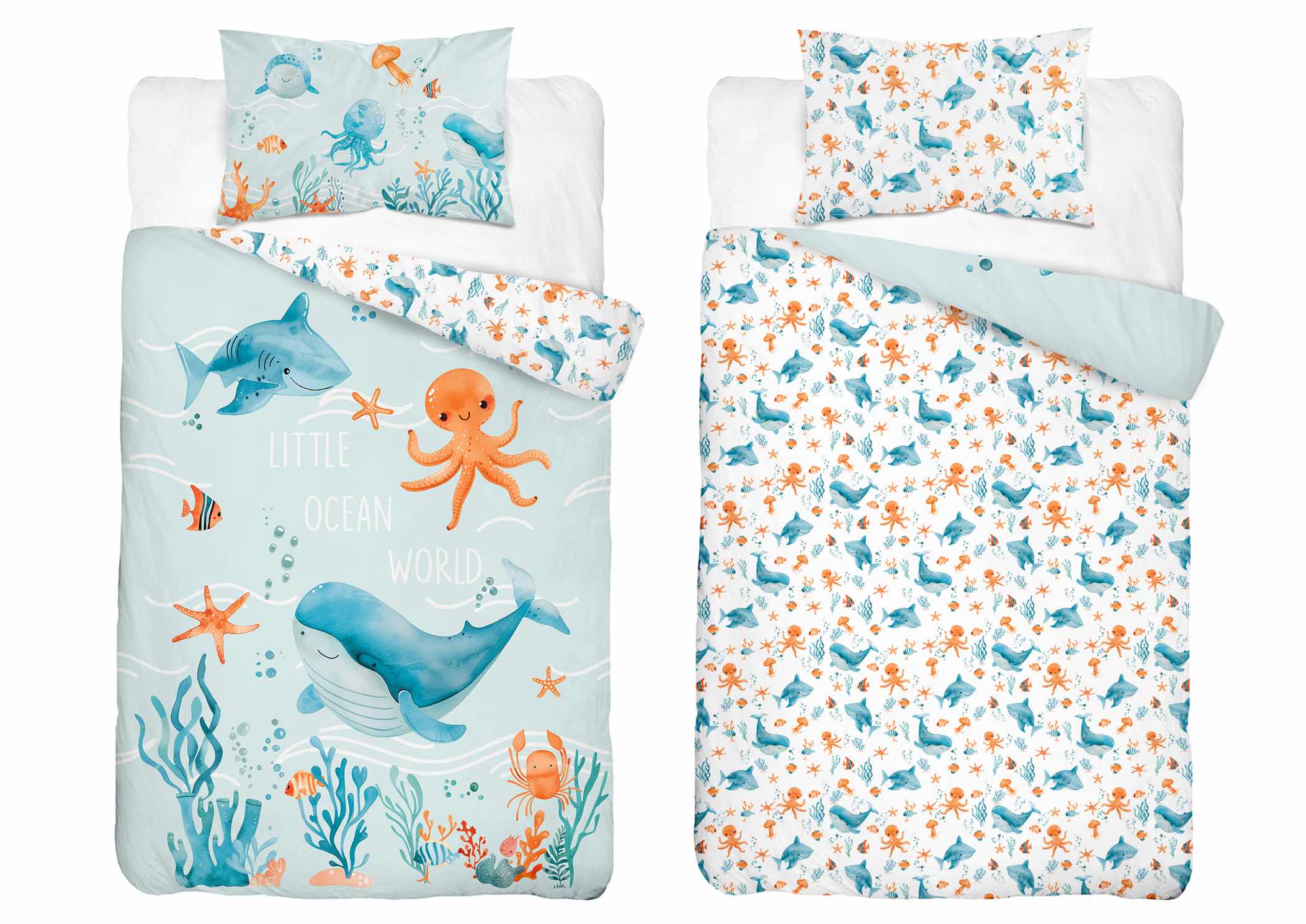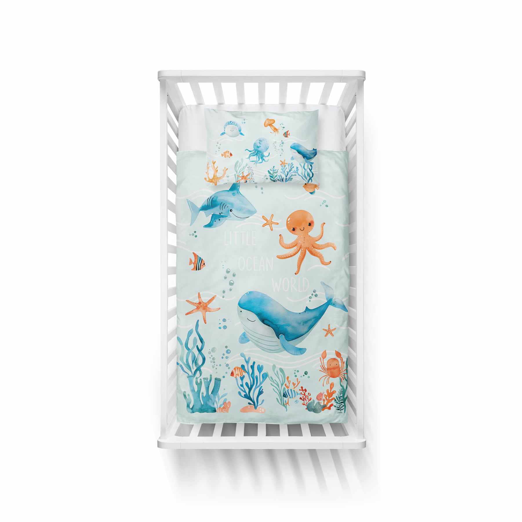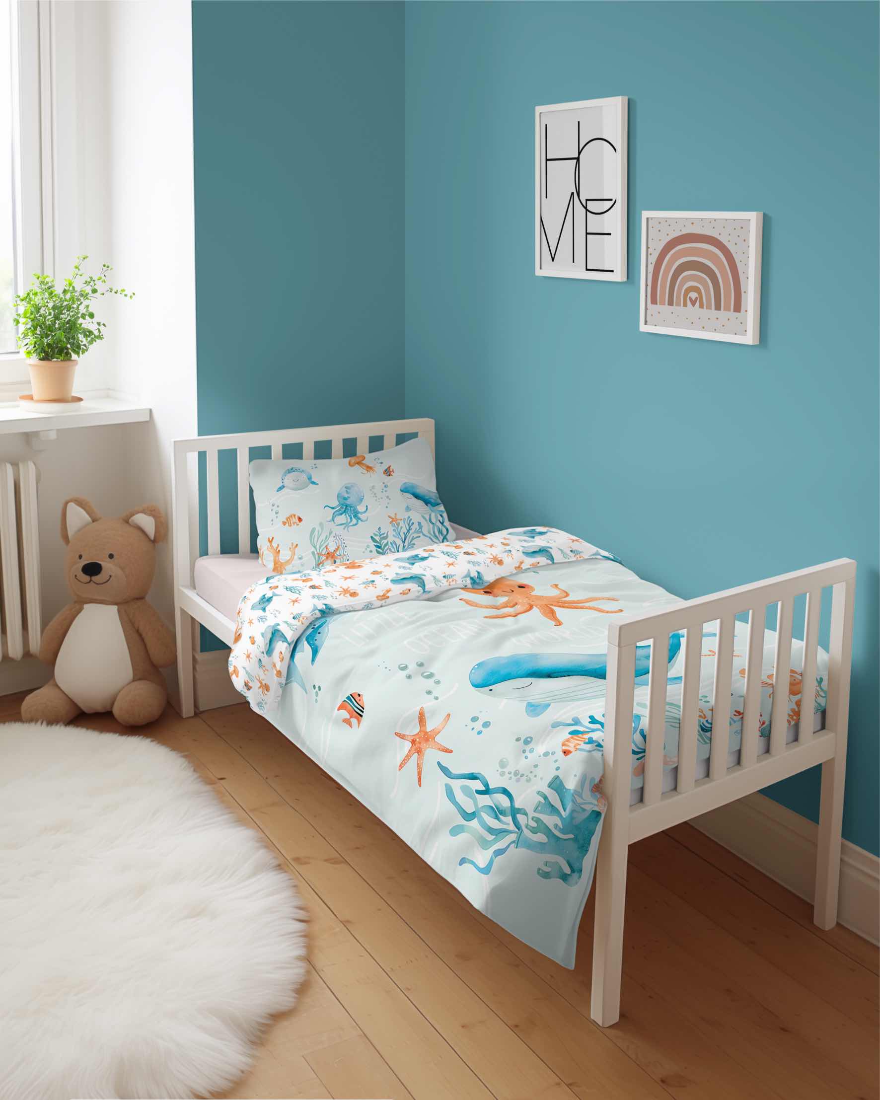 morska przygoda dwustronna pościel bawełniana maya moo 100x135 + 40x60 do łóżeczka 5508B