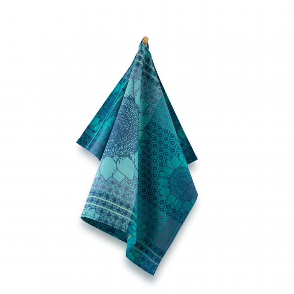 Ściereczka Sunflowers w kolorze niebieskim 50x70 to ukłon w stronę natury i jej najpiękniejszych barw. Wykonana w 100% z bawełny organicznej, z certyfikatem GOTS, jest nie tylko przyjemna w dotyku, ale także trwała i przyjazna dla środowiska. Żakardowy splot sprawia, że wzór pozostaje wyrazisty przez długi czas, a gramatura 240 g/m² zapewnia świetną chłonność i wytrzymałość w codziennym użytkowaniu.
