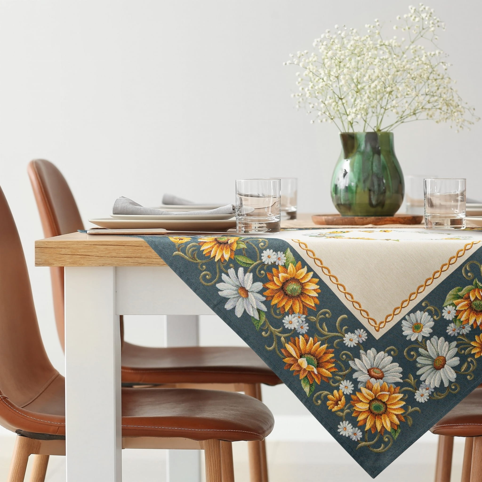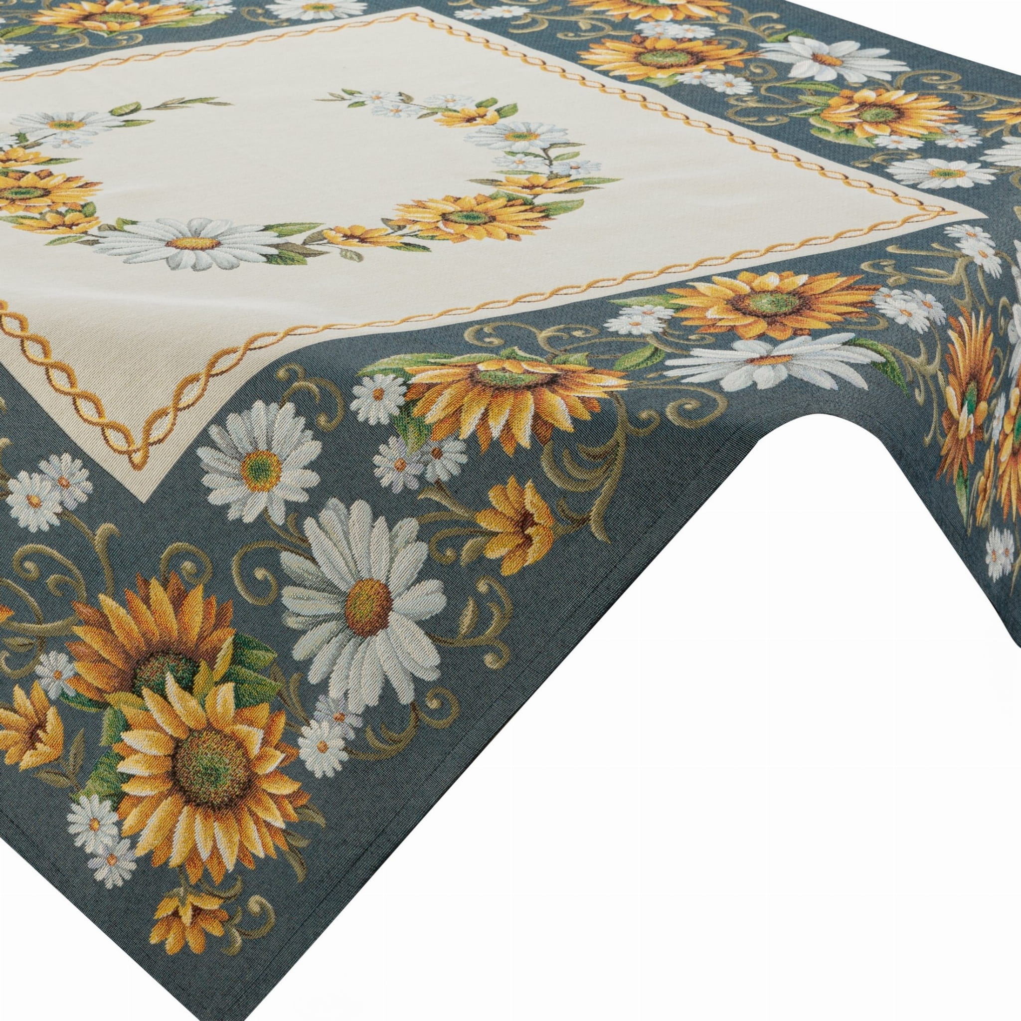 niebieski obrus gobelin kwadrat słoneczniki 100x100 EUROFIRANY