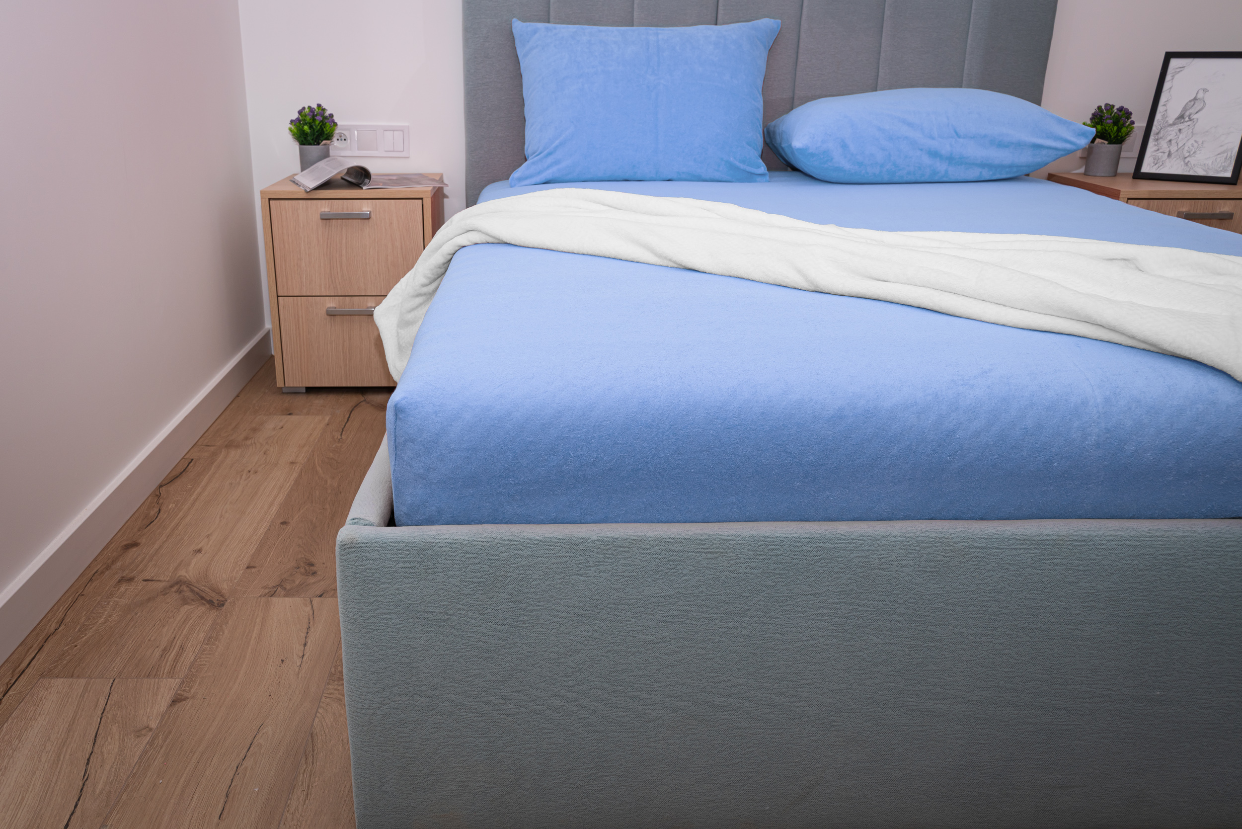 niebieskie PRZEŚCIERADŁO FROTTE Z GUMKĄ