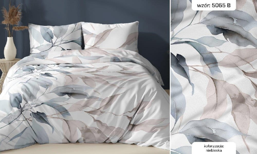 niebieskie liście pościel z satyny bawełnianej 5065B