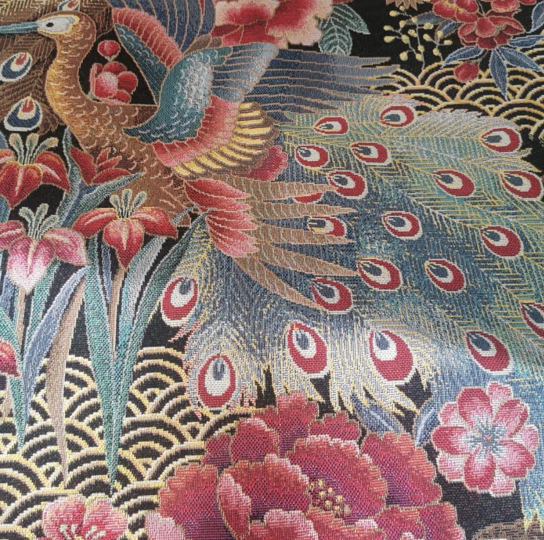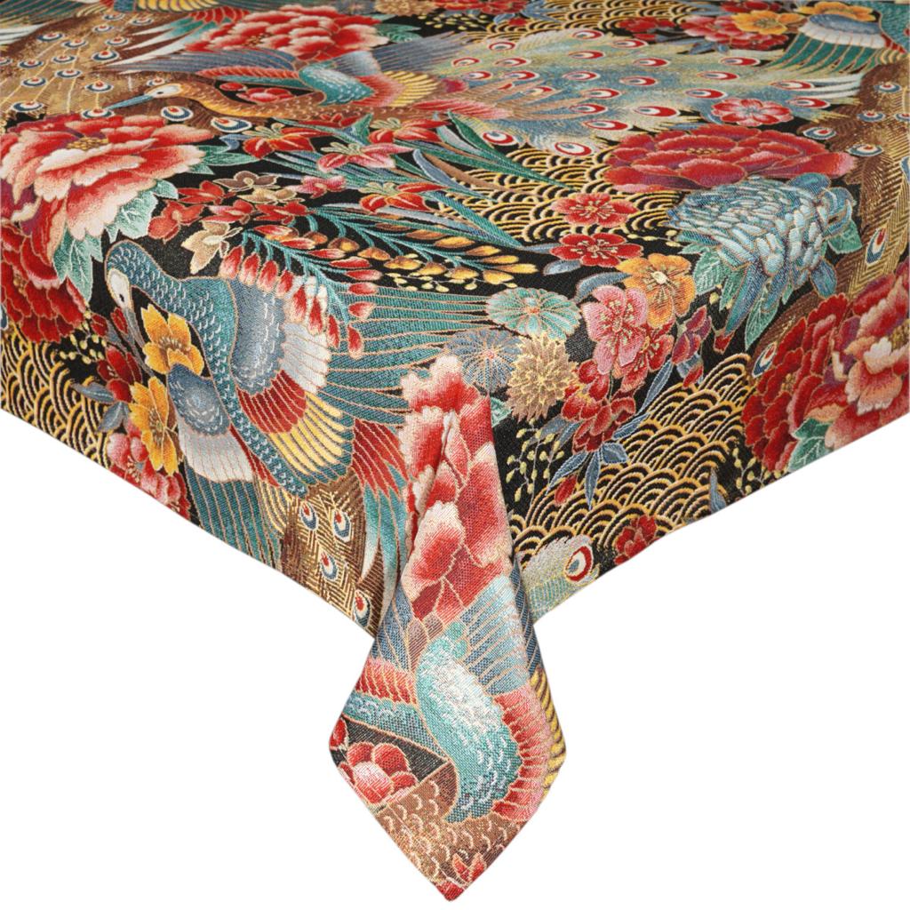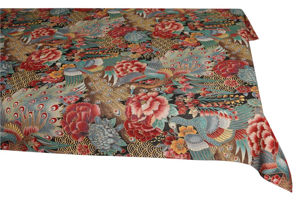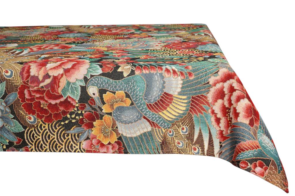 Ekskluzywny obrus Gobelin Paw na czarnym tle jest dopełnieniem i ozdobą każdego zastawionego stołu. Wykonany z precyzją z plamoodpornej tkaniny świetnie wygląda i eksponuje każdą elegancką zastawę z efektownymi zdobieniami. Będzie się cudownie prezentował w tradycyjnych wnętrzach, jak i w nowocześnie urządzonych pomieszczeniach. Produkt wyprodukowany w Polsce.