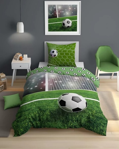 Kolorowy nadruk czyni ją idealną propozycją dla osób, które uwielbiają piłkę nożną. Z pewnością wprowadzą one do sypialni przyjazną atmosferę i pozwolą cieszyć się spokojnym snem. Dodatkowo wzór pościeli jest dwustronny więc możemy wybrać w jaki sposób zaaranżujemy sypialnie. Bawełniana pościel młodzieżowa zapinana jest na bezpieczny i atestowany zamek błyskawiczny, który ułatwia i przyśpiesza wymianę pościeli.