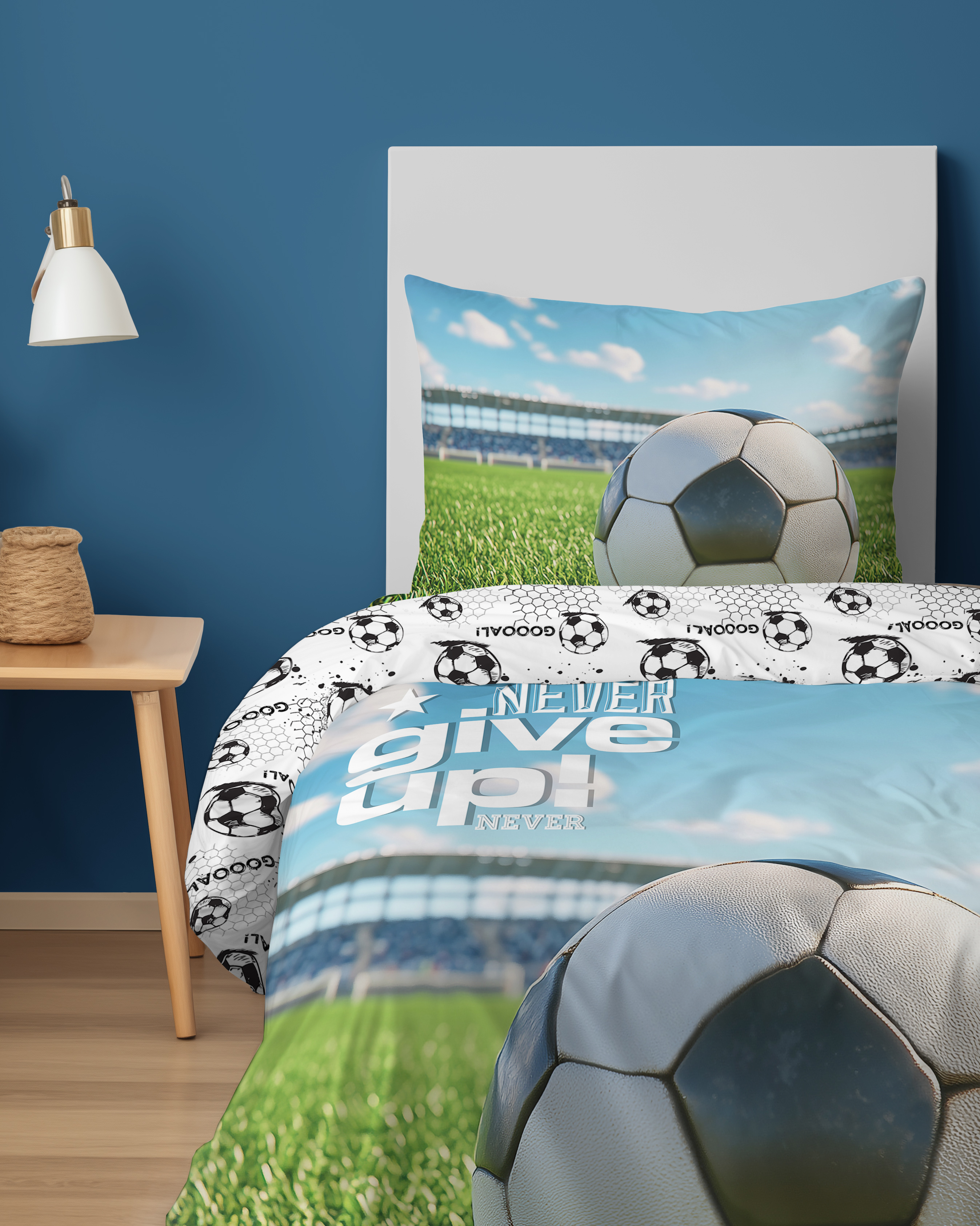 Kolorowy nadruk na pościeli wprowadzi do sypialni przyjazną atmosferę i pozwoli cieszyć się spokojnym snem. Dodatkowo wzór pościeli jest dwustronny więc możemy wybrać w jaki sposób zaaranżujemy sypialnie. Pościel z Piłką zapinana jest na bezpieczny i atestowany zamek błyskawiczny, który ułatwia i przyśpiesza wymianę pościeli. Pościel może okazać się idealną propozycją na prezent.