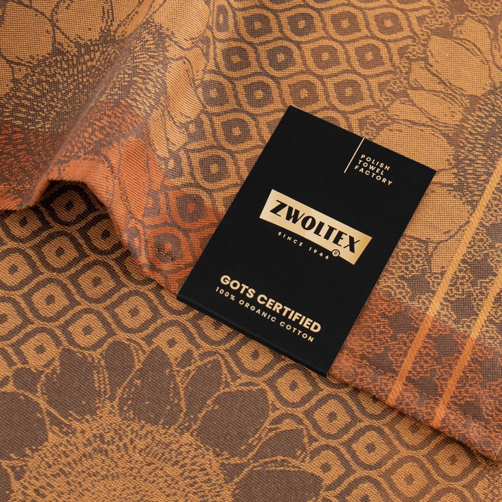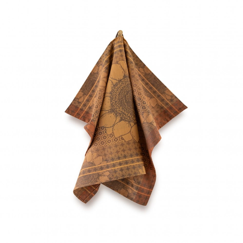 Ściereczka Sunflowers w kolorze pomarańczowym 50x70 to ukłon w stronę natury i jej najpiękniejszych barw. Wykonana w 100% z bawełny organicznej, z certyfikatem GOTS, jest nie tylko przyjemna w dotyku, ale także trwała i przyjazna dla środowiska. Żakardowy splot sprawia, że wzór pozostaje wyrazisty przez długi czas, a gramatura 240 g/m² zapewnia świetną chłonność i wytrzymałość w codziennym użytkowaniu.