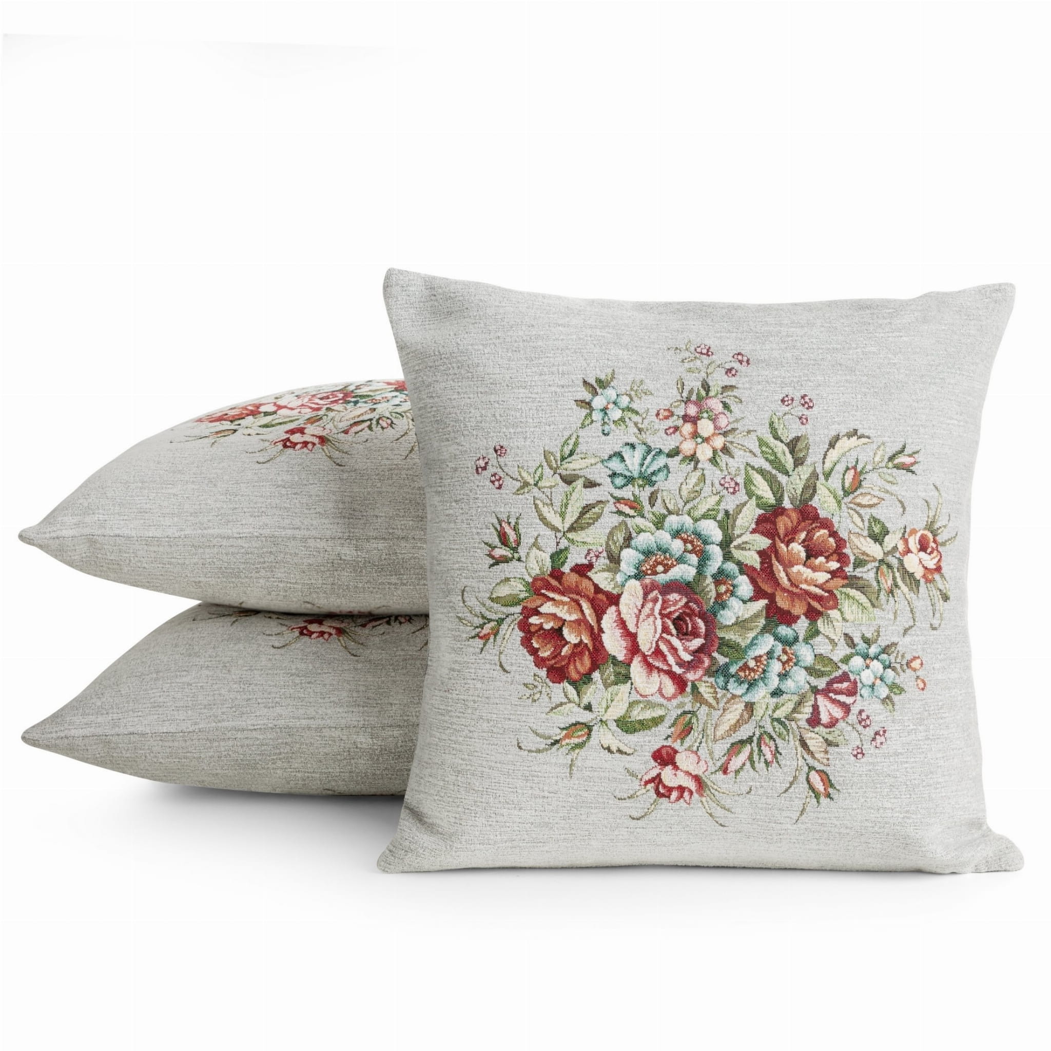 Piękna dekoracyjna poszewka Gobelin Szenilowa 1233 popielata 45x45 na poduszkę elegancko ozdobi Twoje wnętrze. Zasuwana na zamek błyskawiczny. Poszewka jednostronna z motywem kwiatów - z tyłu jednobarwna tkanina.